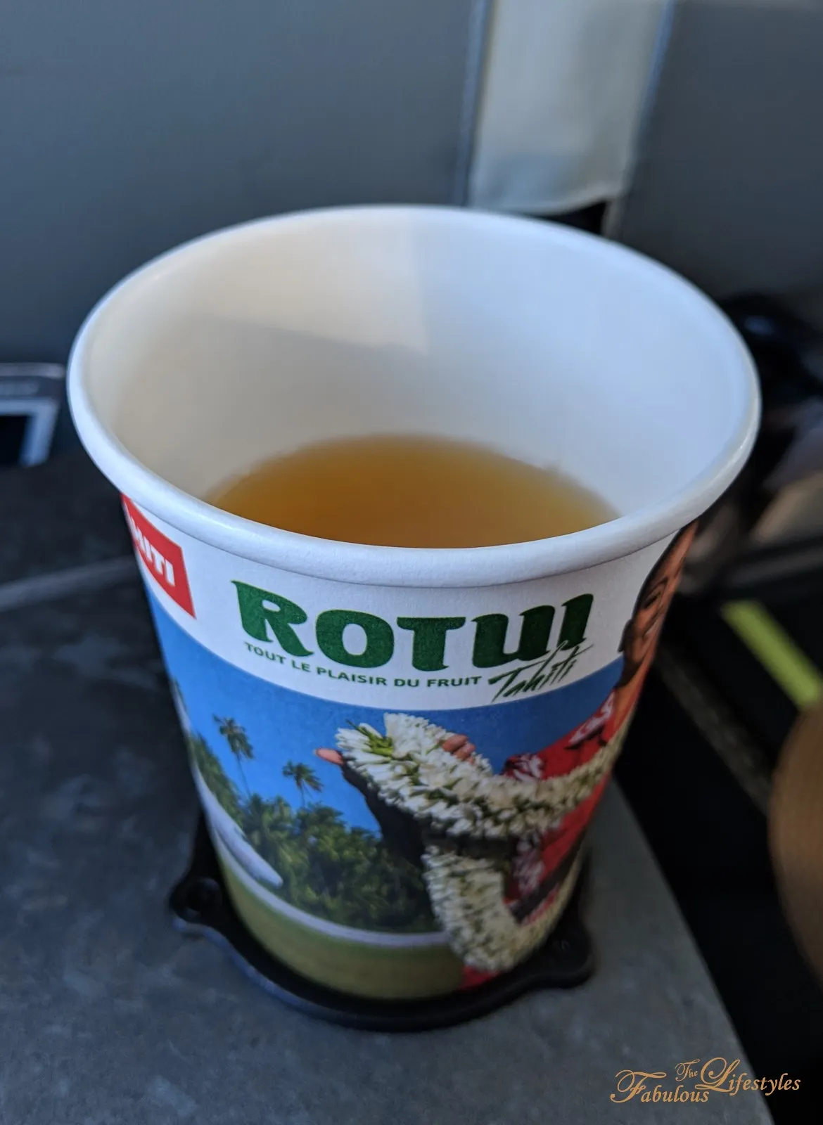 After passing Moorea, there's a long stretch of just ocean views. The flight attendants came around with drinks, and we were thrilled to find out they were serving pineapple juice made locally in Moorea!
