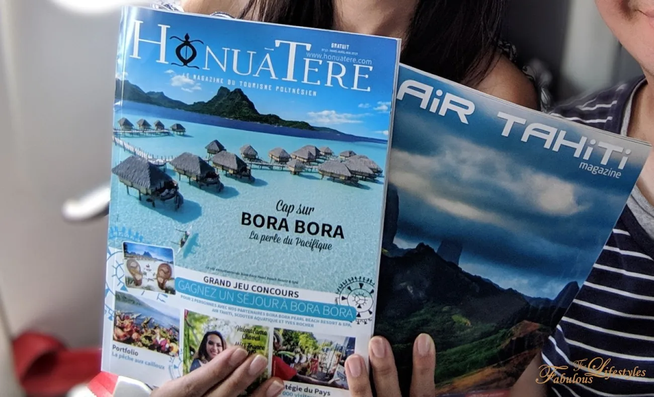 There are in-flight magazines to browse~ Seeing the flawless ocean and overwater bungalows on the cover, we couldn't wait to finally arrive in Bora Bora!