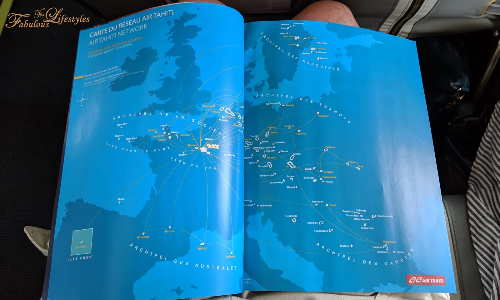 The magazine features Air Tahiti's route map. Taking a closer look, we realized how few islands in French Polynesia Cherry and Fish actually knew about—there are so many other islands out there!