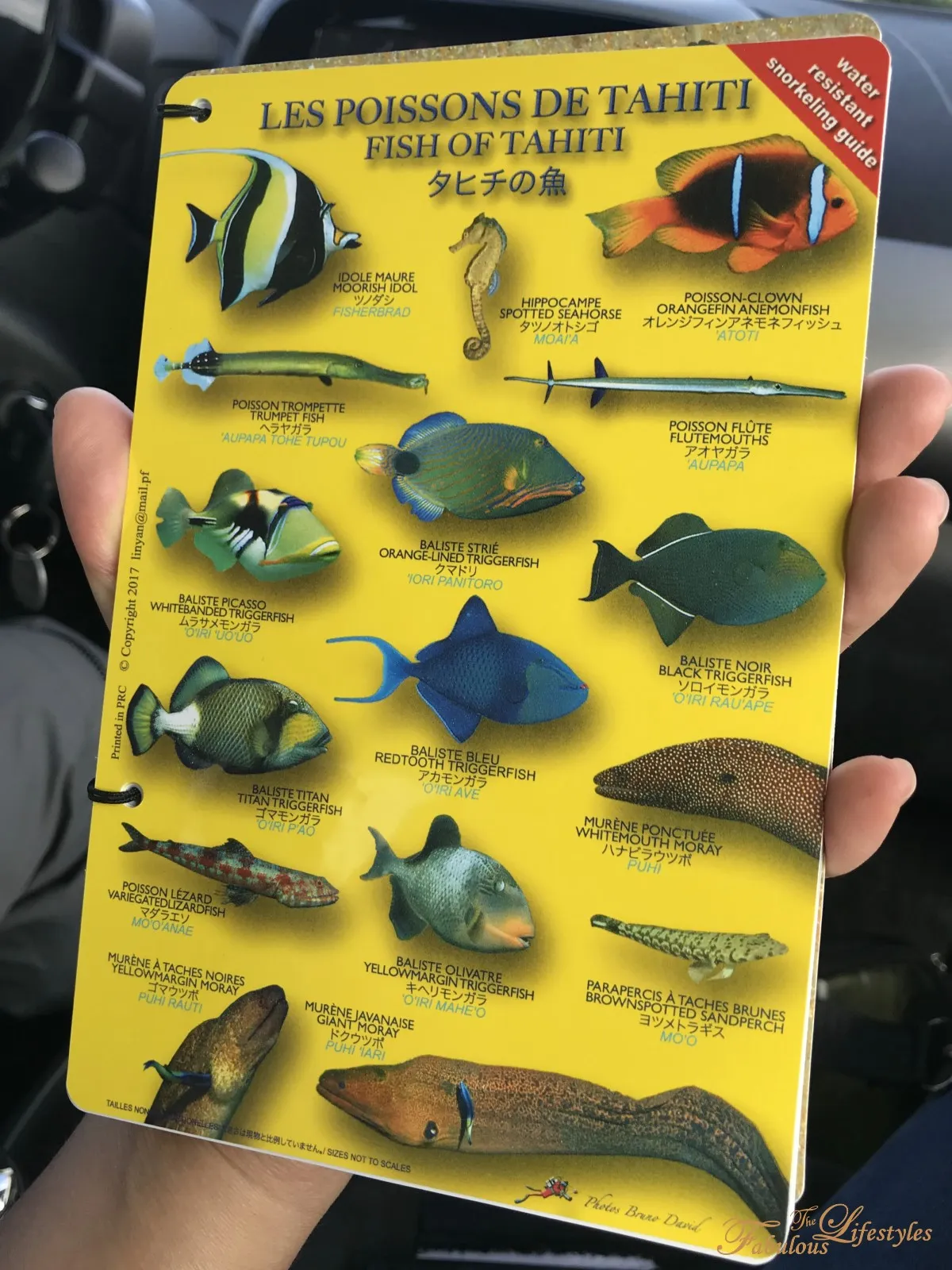 There's even a waterproof guide to Tahitian fish in the room that you can bring right to the beach with you~
