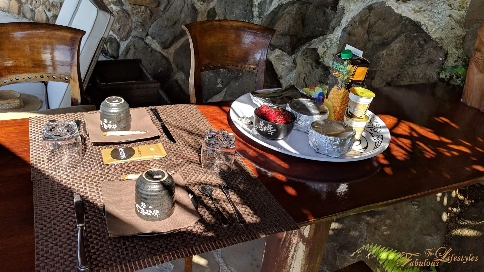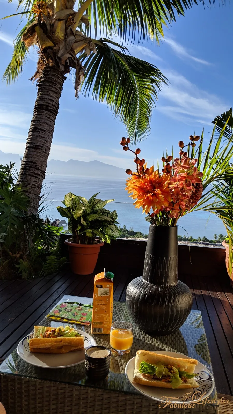 On one of our mornings, we pre-booked breakfast with the host ($15 USD per person) — and it was so worth it. He prepared a gorgeous spread of tropical fruits, locally made Tahitian juice, and yogurt!