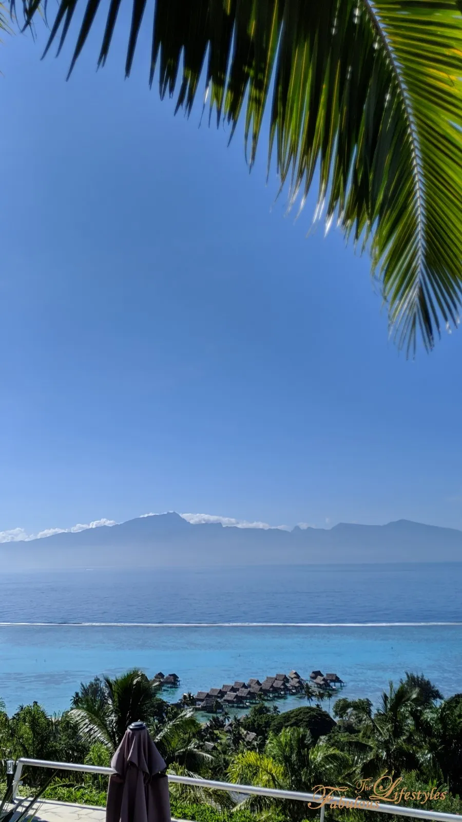 Waking up to see the misty silhouette of Tahiti island across the water, reflected in a brilliant blue lagoon, framed by overwater bungalows, wispy clouds, and a perfect blue sky… Our hearts were absolutely full!!!