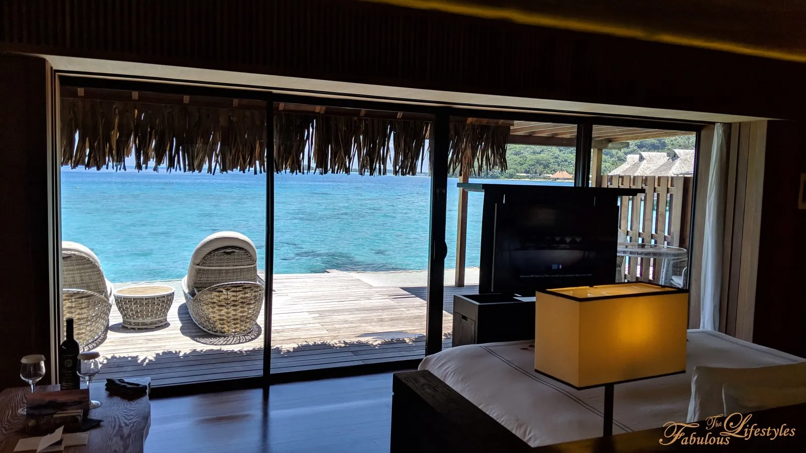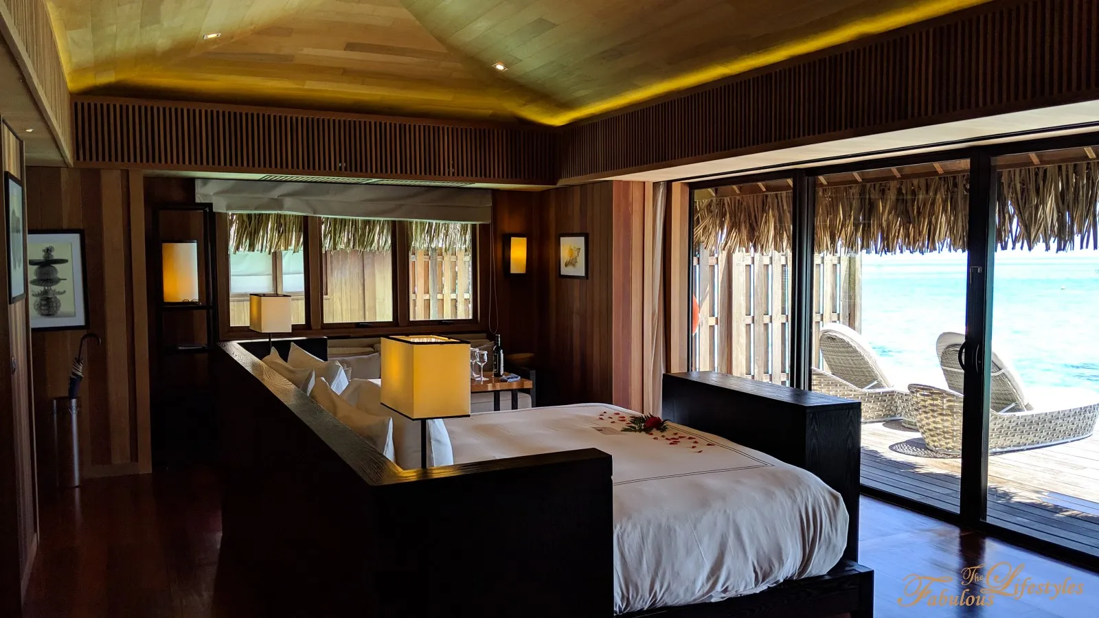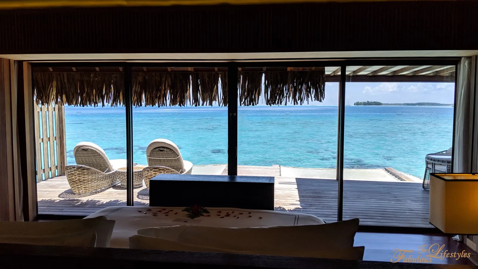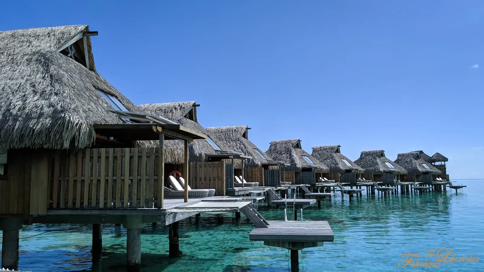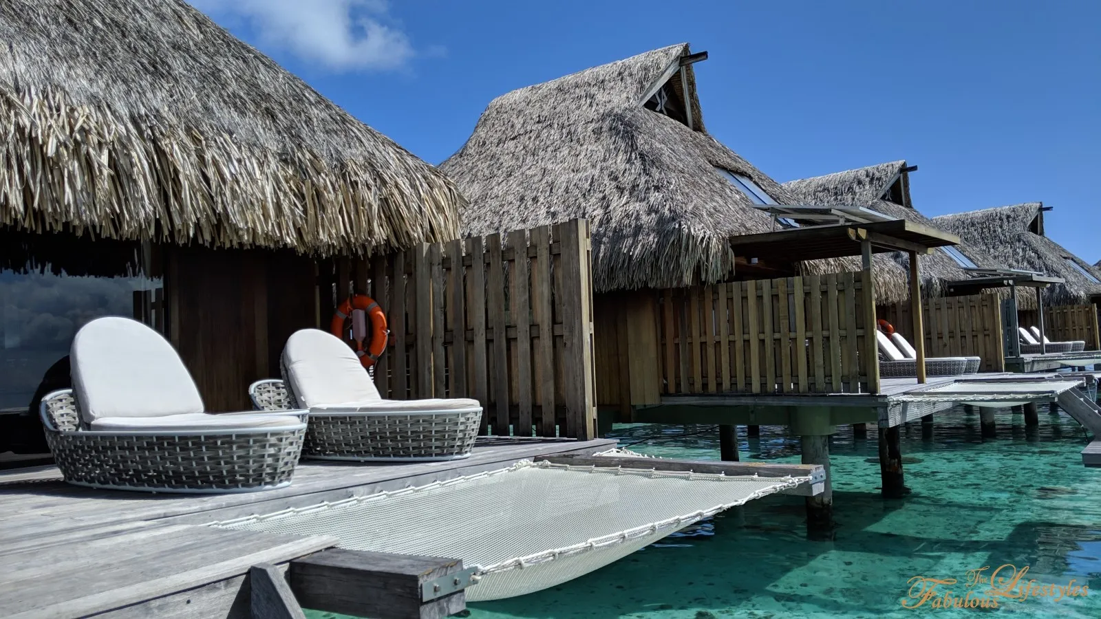Stepping out onto the deck, you can also see the spectacular rows of overwater bungalows stretching out on either side.