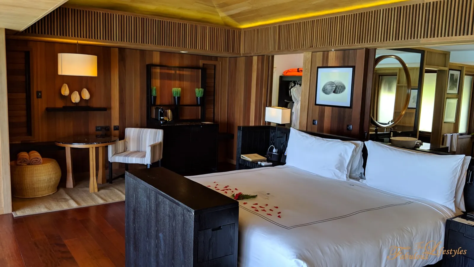 They even placed a massive, vibrant bowl of tropical flowers right on the vanity table. It’s such a thoughtful touch—definitely makes you feel like the big bucks 💸💸💸 you dropped on the upgrade were well worth it 😆