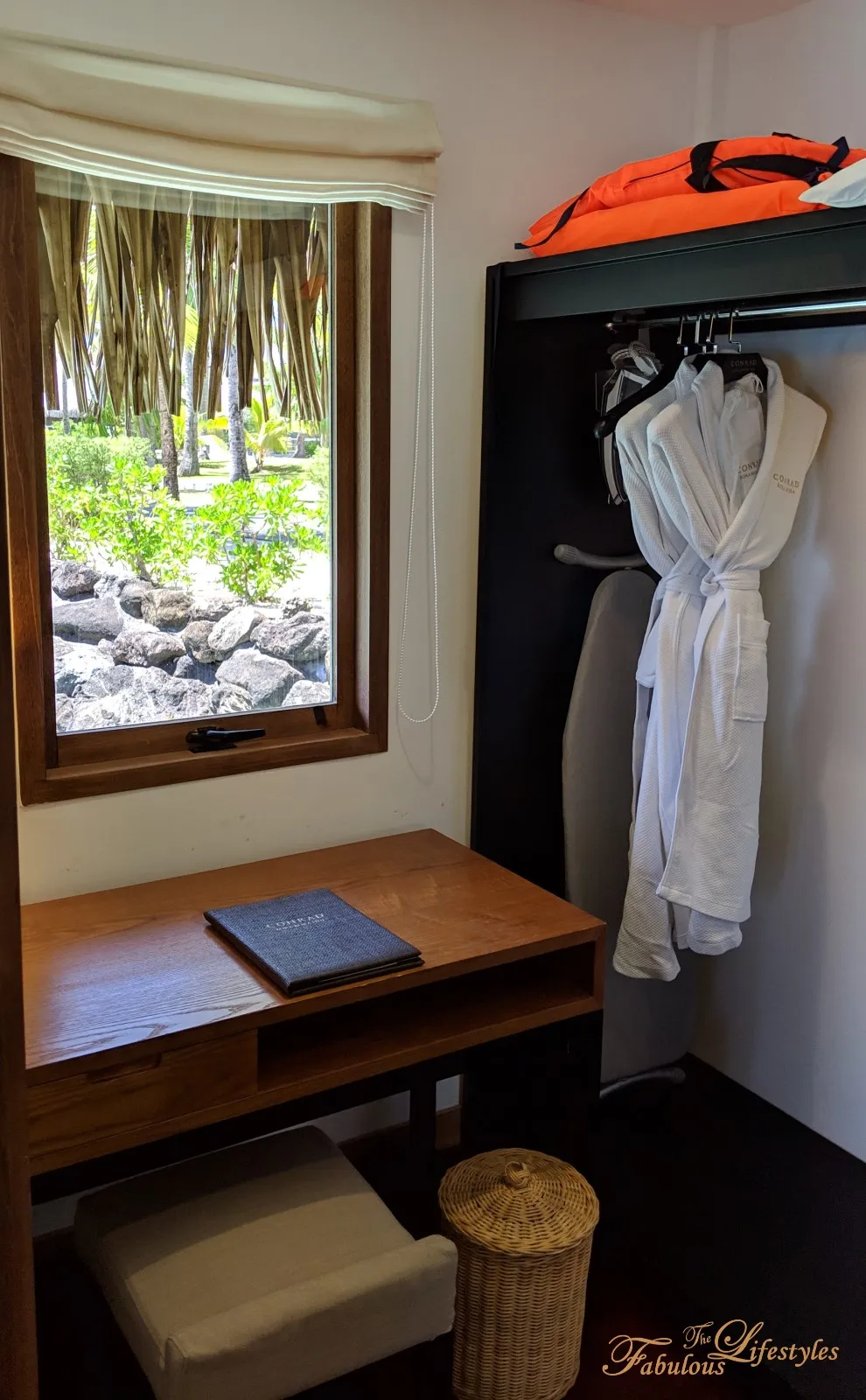 Right next to the Mini Bar is a walk-in closet that doubles as a little study. The life jackets stored on top of the wardrobe are there for you to use when snorkeling~
