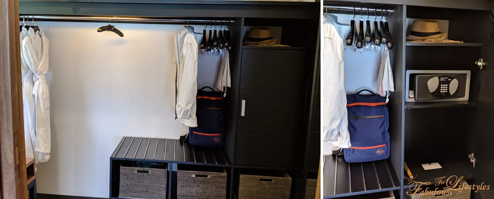 There is so much hanging space for clothes—it's incredibly practical!! You'll also find the safety deposit box tucked inside one of the closet cabinets~