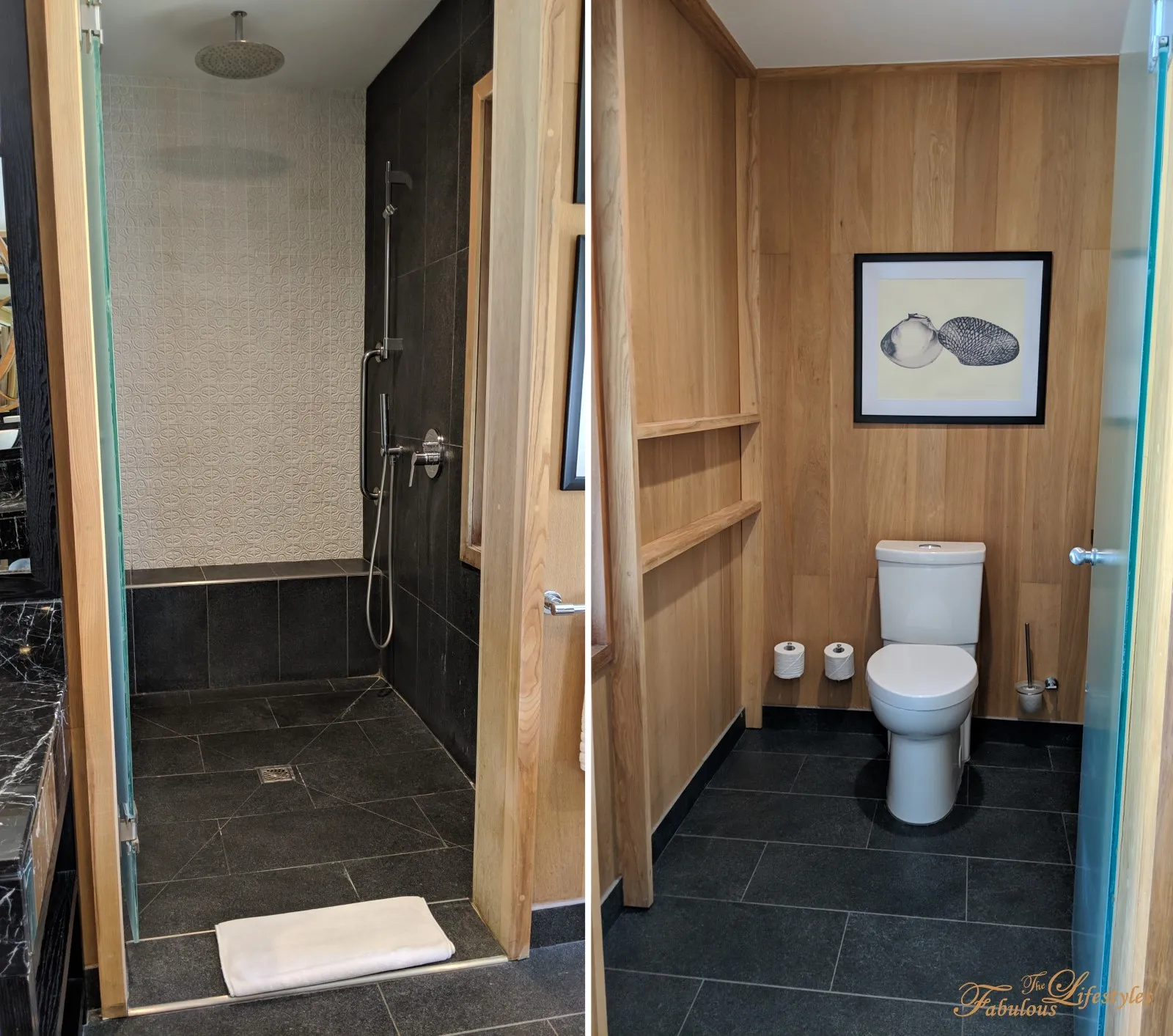 The bathroom is so spacious that my camera lens couldn't capture the whole thing! We eventually had to bust out the fisheye lens just to get a full panoramic shot~~~