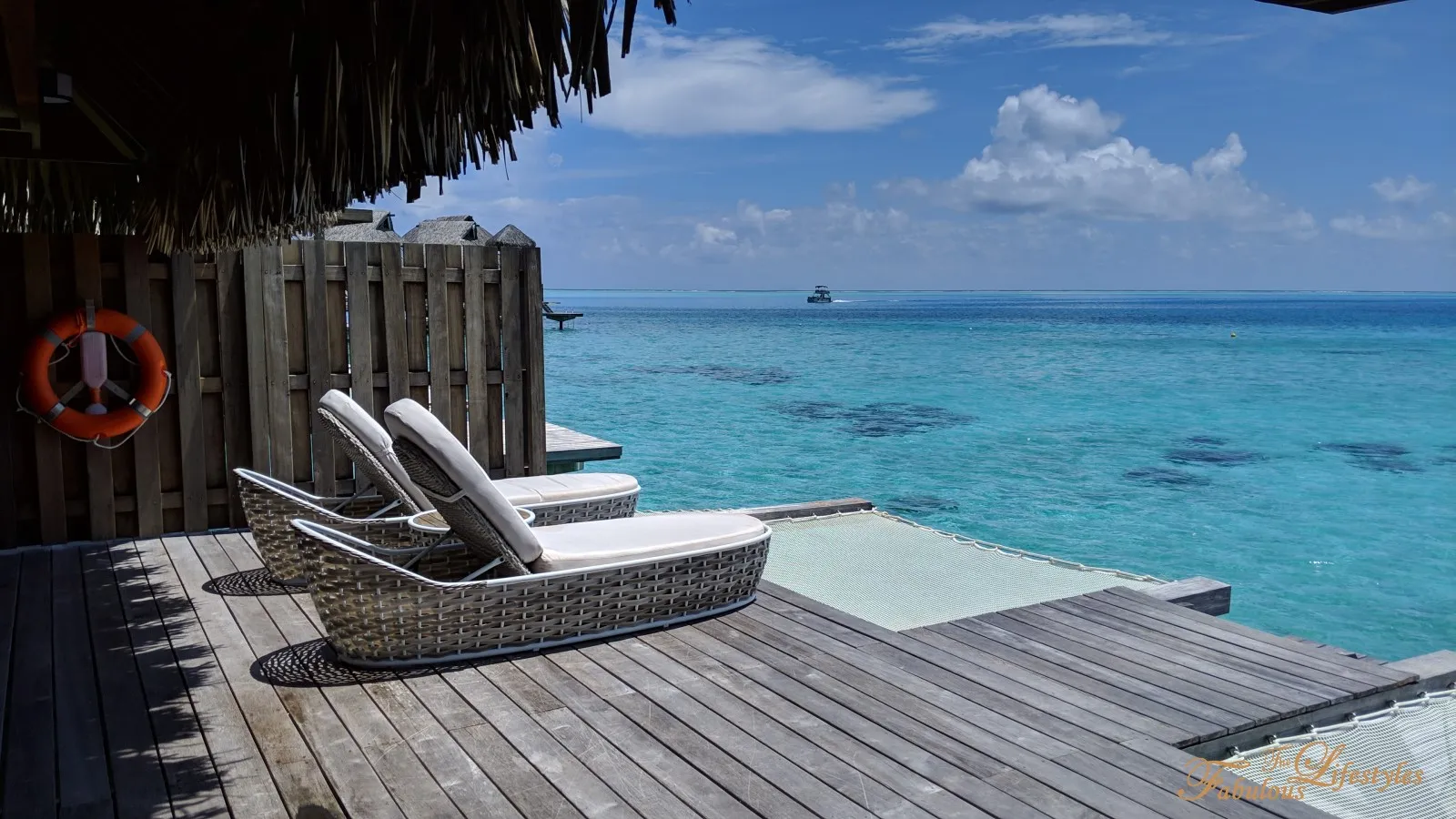 After thoroughly marveling at the relaxing, tropical vibe of the interior, we finally made it to the absolute highlight of the overwater bungalow: the outdoor deck!!!! Because we went with the King Deluxe Overwater Villa, our view was completely unobstructed, giving us a pristine, crystal-clear look at the horizon~