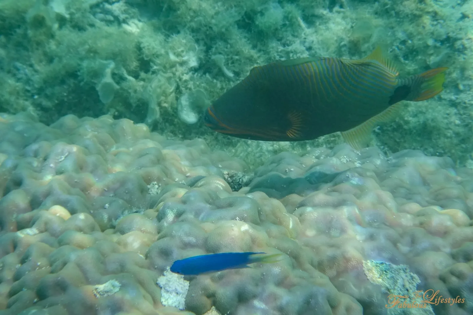The underwater world is a dazzling array of brightly colored, diverse fish. They don't seem scared of humans at all and happily swam right alongside us! We would lose all sense of time the second we started snorkeling~~~