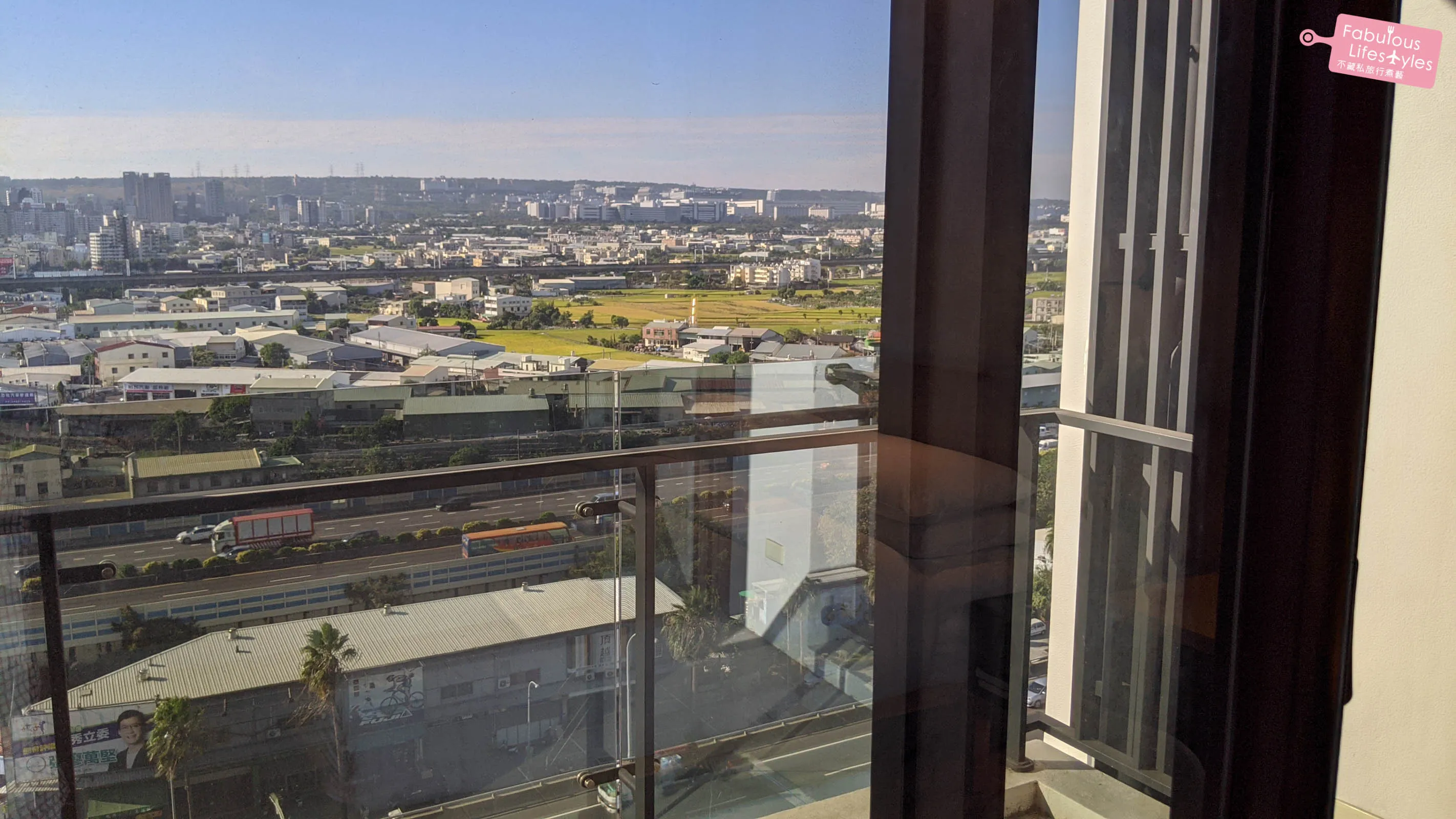 The room features large floor-to-ceiling windows. Our specific room happened to face Taichung’s Dadu Mountain, and the sweeping views were incredibly refreshing and relaxing.