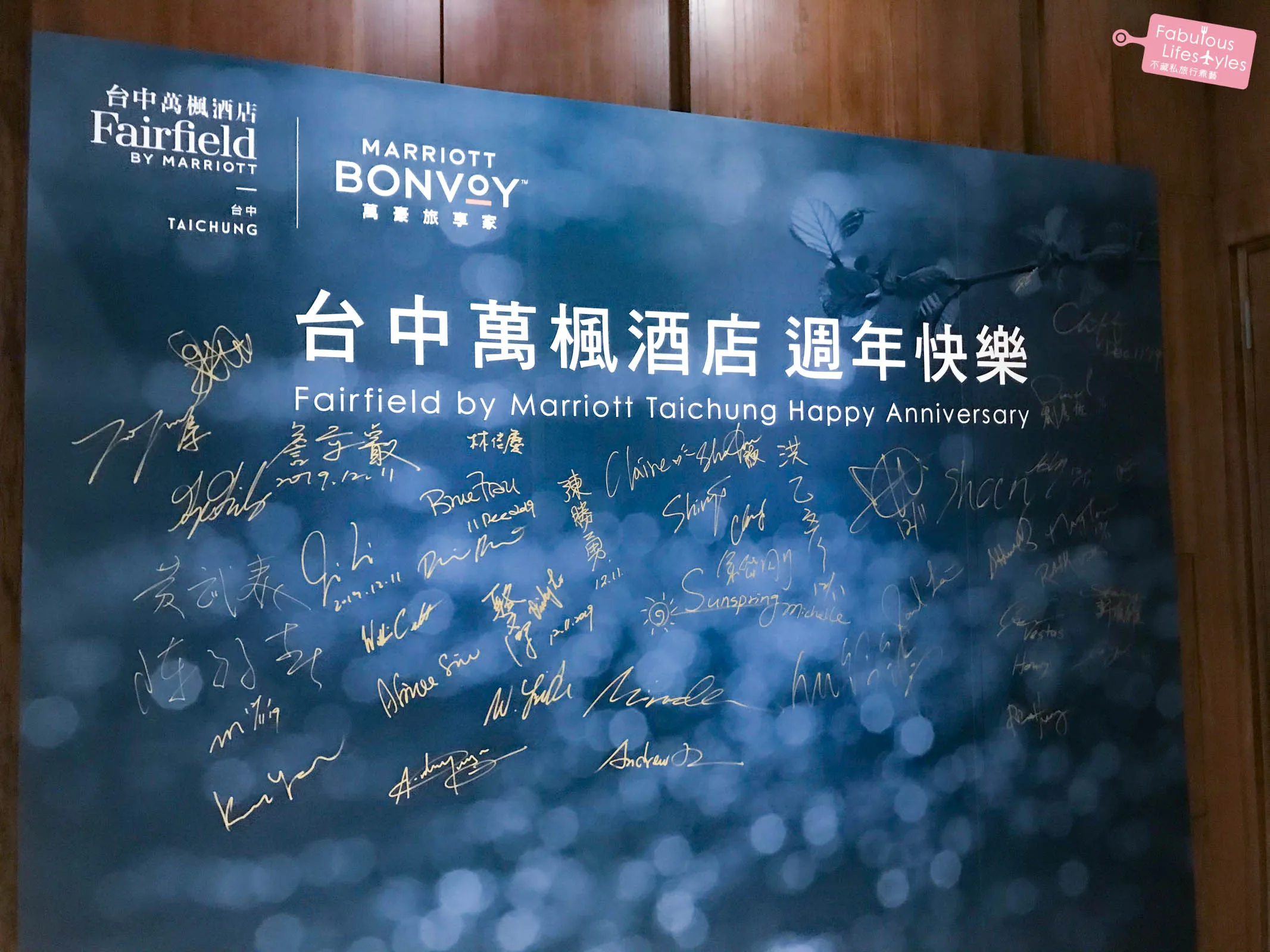 When we stayed in November 2019, Fairfield Taichung left such a deeply positive impression on us. The following month, an American friend was visiting Taichung, so we highly recommended she stay here. By pure coincidence, we were honored to be invited to the hotel's 1st Anniversary Happy Hour party! We left our signatures on the large entrance backdrop and even took a commemorative photo with the General Manager. What a privilege!