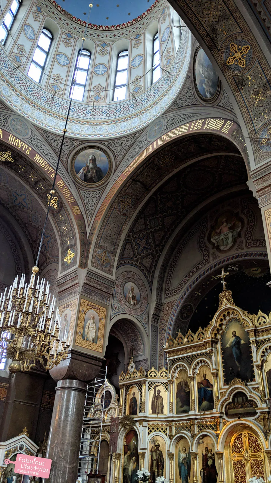 Intricately carved soaring dome, vivid icon paintings, a massive glittering chandelier — all together, it creates one of those rare moments where you simply stand still and take it all in. We came out of Uspenski Cathedral genuinely surprised: the design is so different from most European churches we've visited. It's absolutely worth the stop.
