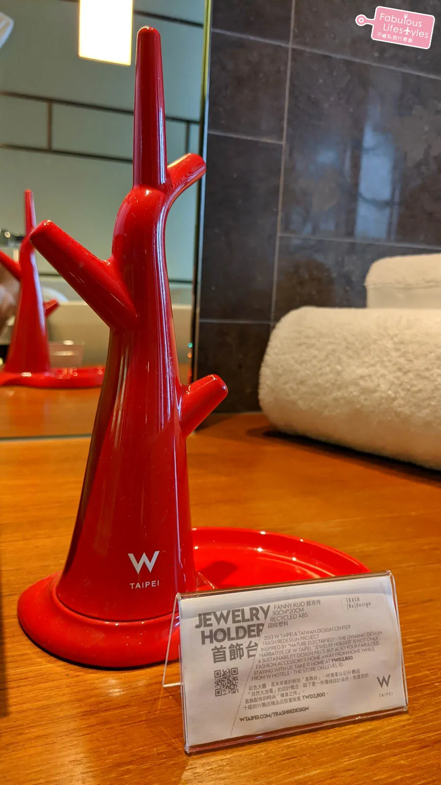 The most fascinating item is this bright red jewelry stand! We’ve never seen a jewelry stand in any other hotel. If you like it, you can even buy one to take home. We have to say, W Hotel really knows how to do business—the entire room basically doubles as a showroom 😆