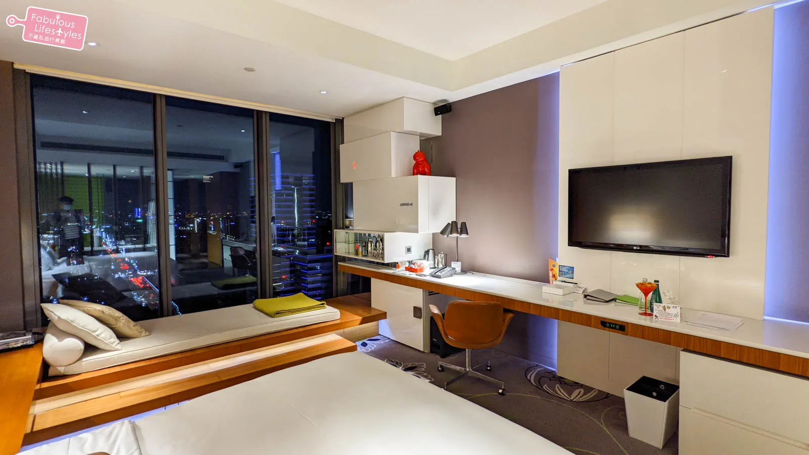This was our first time staying at a W Hotel property. Overall, we felt the room was quite spacious and the design was truly one-of-a-kind—it just feels entirely different from other hotels. Although it has a bit of age, it's maintained incredibly well, and the design still feels very fashionable. You can tell that when it opened a decade ago, its room design was absolutely cutting-edge! The comfort level of the room makes you want to just laze around and never leave. With the massive floor-to-ceiling windows, you can take in the stunning Xinyi District cityscape without even leaving the bed. It's beautiful and photogenic both day and night—we highly recommend it!