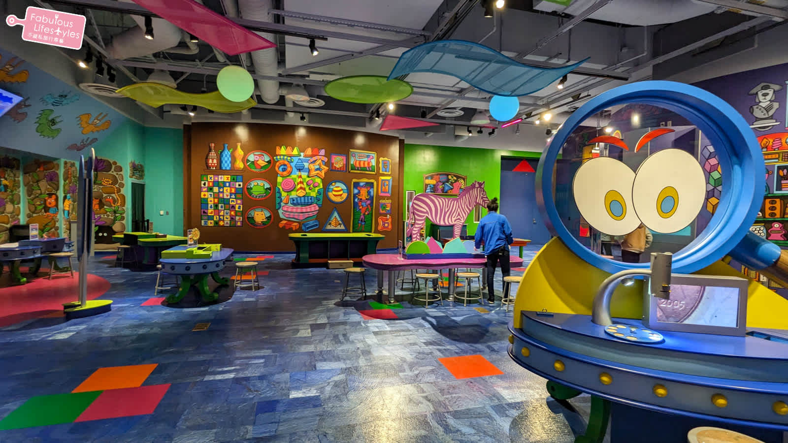 兒童探索博物館總共有三層樓,每層都有各自的主題,比方說一樓有玩水的區域、學步兒專區、充滿復古歐洲風的話劇舞台等。二樓是職業模擬專區,包含醫院、牙醫診所、職業球員、零售業、修車廠、機場和駕駛艙等等。三樓有藝術區也有一區是小遊戲區利用一些小遊戲讓小孩動動腦也順便學習新知