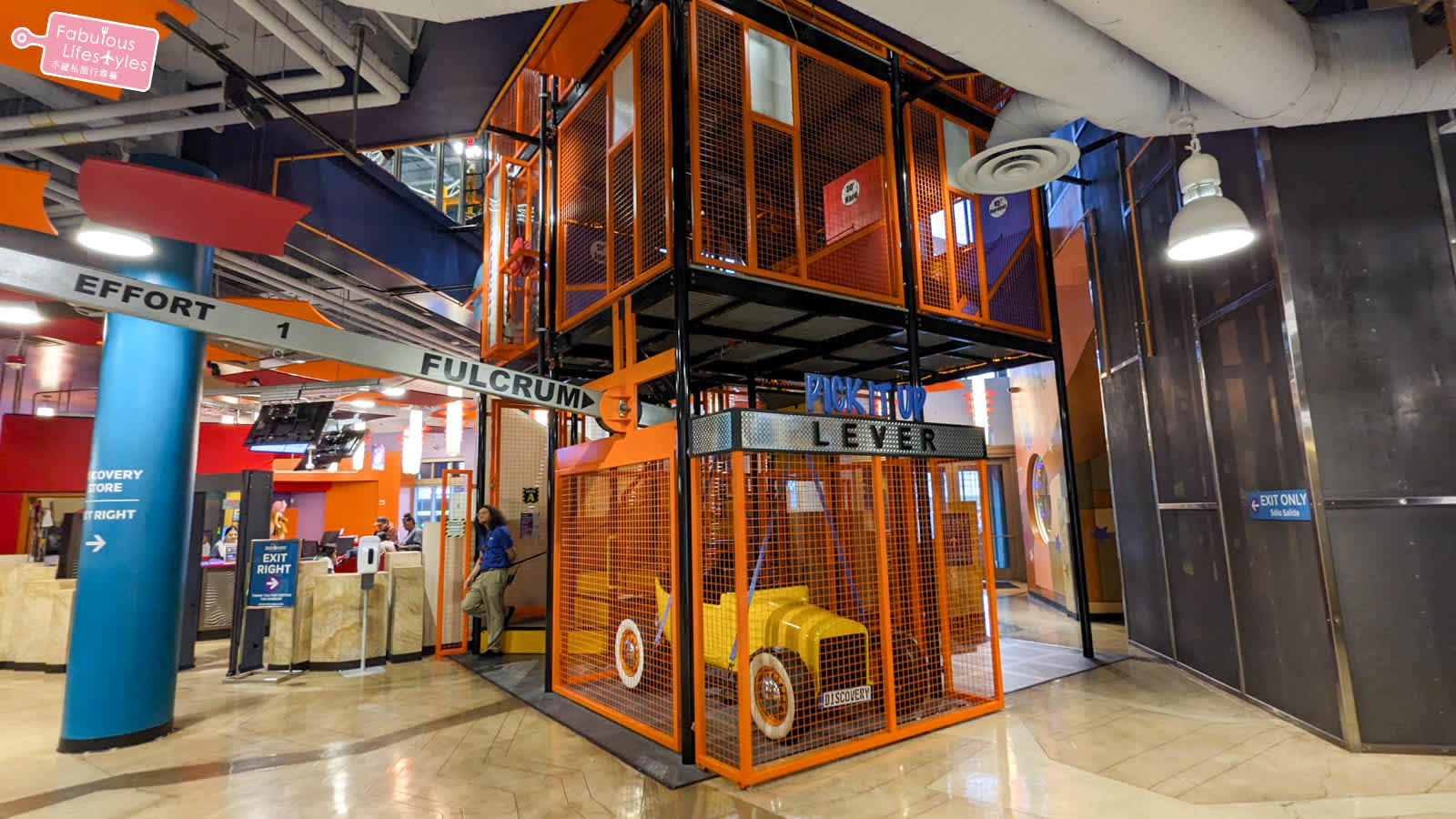 兒童探索博物館入門後的左手邊橘色的這個區域,是個貫穿博物館三層樓的遊樂設施,小朋友可以自由地爬上爬下,可以不用坐電梯,讓小朋友自己慢慢地玩上去各樓層~ 很可惜我們的時間完全不夠~這區完全沒有進去玩到