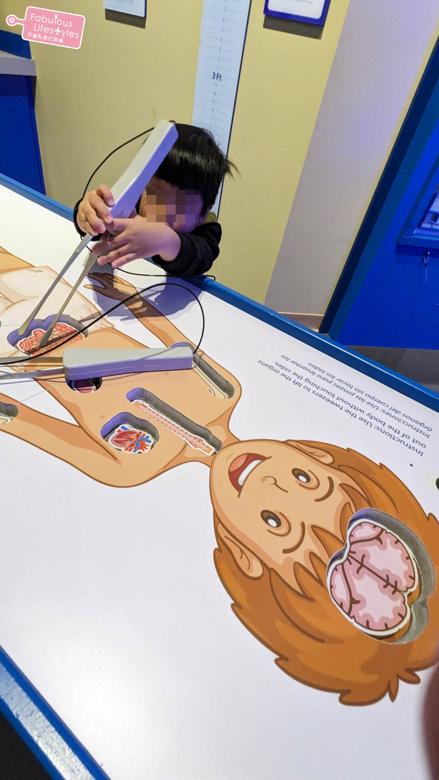 還可以在醫院玩手術扮家家酒~ 可以讓小朋友用鐵夾子夾起人體器官,如果鐵夾子碰到人體器官周圍的鐵,就會發出錯誤的聲響。蠻有趣也蠻有挑戰性的!