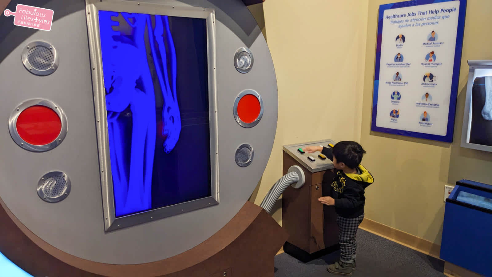 接著來到醫院照X光~ 有互動式的按鈕和銀幕可以讓小朋友玩很久~