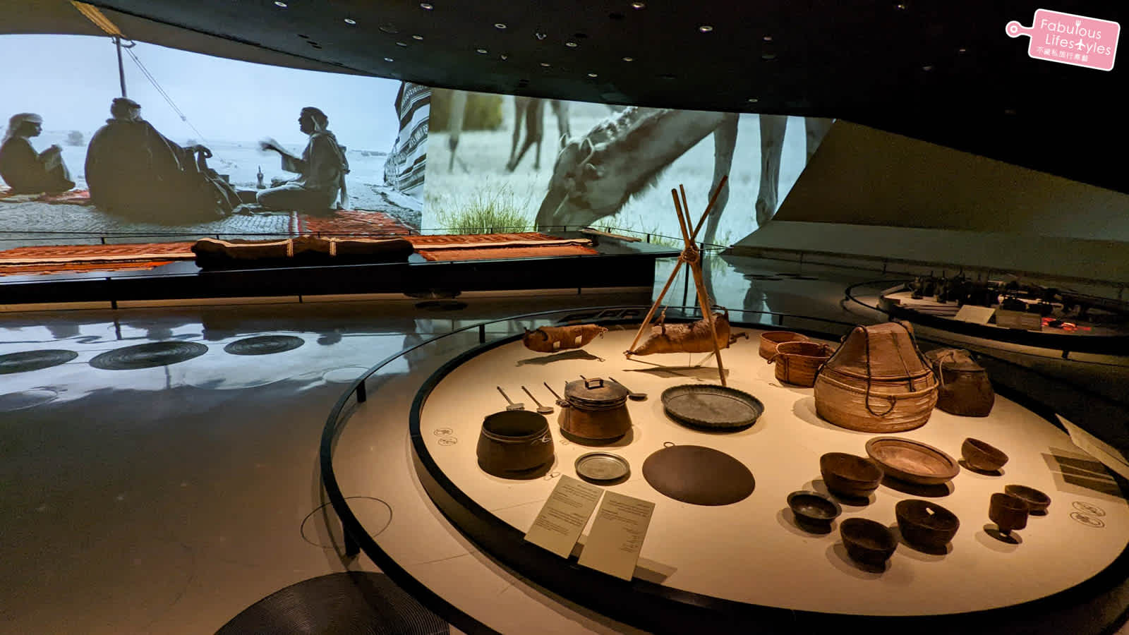 這一部分的展區講述了卡達的人文歷史,包括倚海以及在沙漠中生活兩種不同族群的生活方式,包括所用的器皿,工具、服飾等等~ 博物館從最早發現人類歷史的蹤跡開始的一些化石,直到後期的一些出土的器皿等等都有陳列