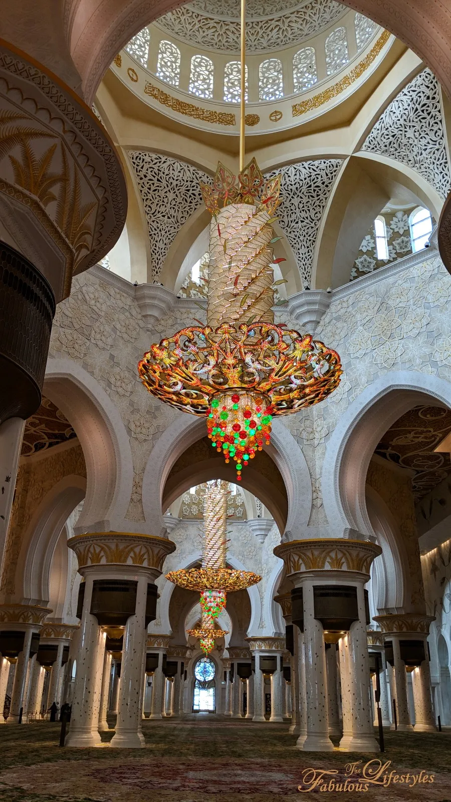 Then we entered the main prayer hall—and there it was, the grand chandelier itself!!! It is seriously spectacular!!!