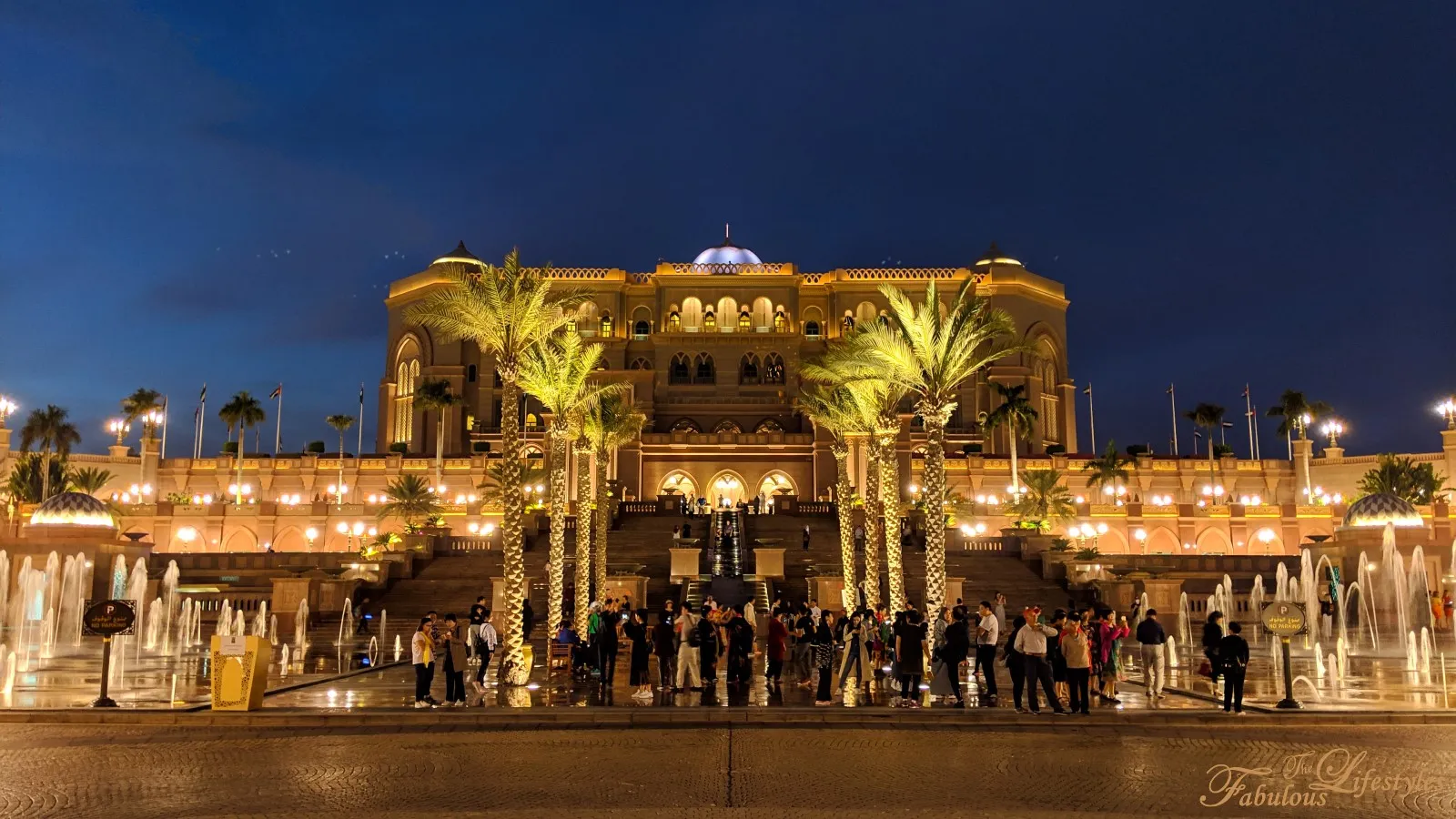 We actually highly recommend stopping outside Emirates Palace right around sunset! Taking photos of the illuminated palace against the colorful, glowing sky is stunning!