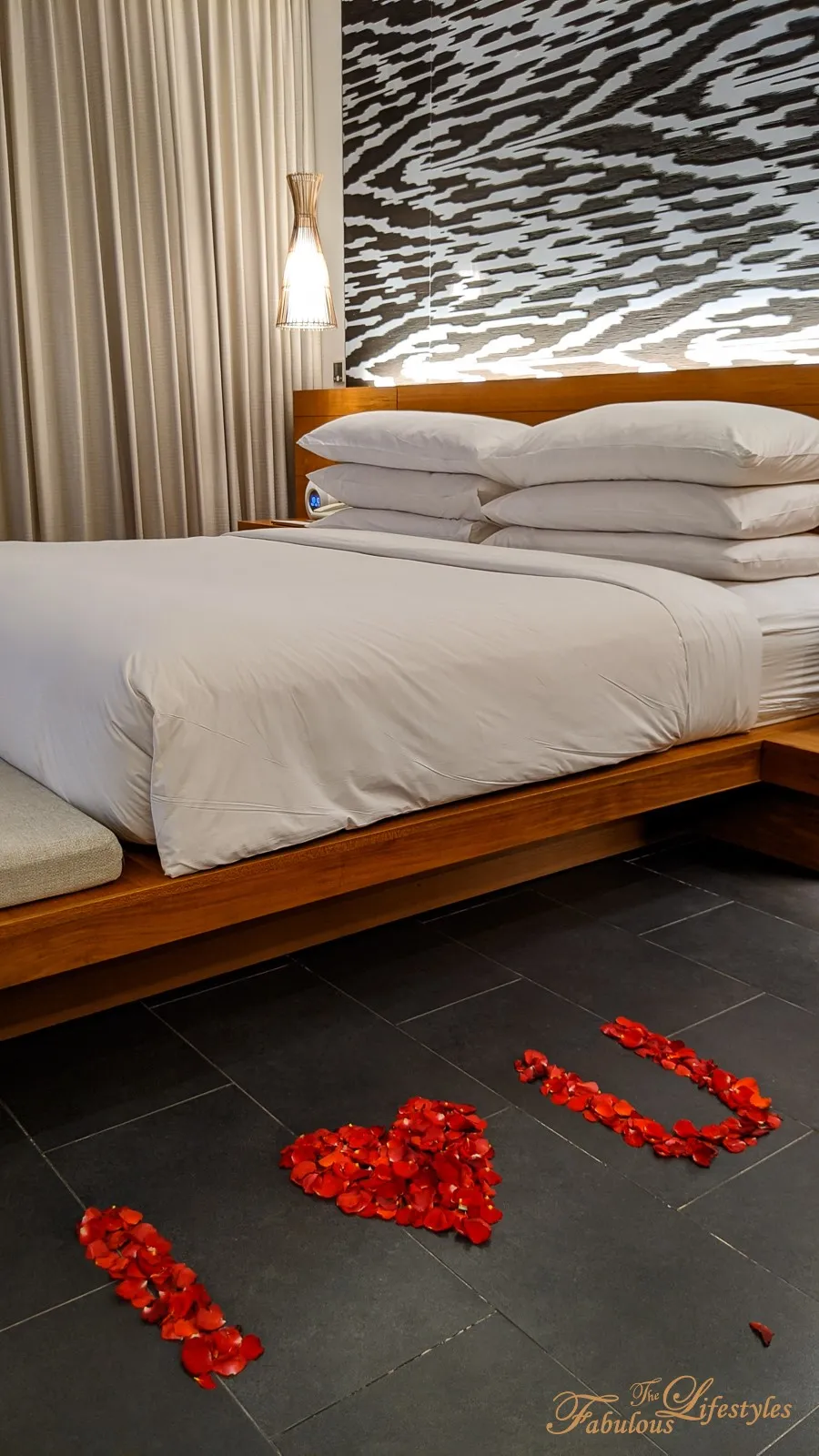 Finally~ To all our friends planning a honeymoon in Bali, pay attention! Unlike many hotels that just use towel animals and a few scattered petals to decorate a honeymoon suite, this Renaissance went all out, using a massive amount of petals to spell out "I ❤️ U" right on the floor. The contrast of the bright red petals against the black floor tiles is absolutely stunning, isn't it??