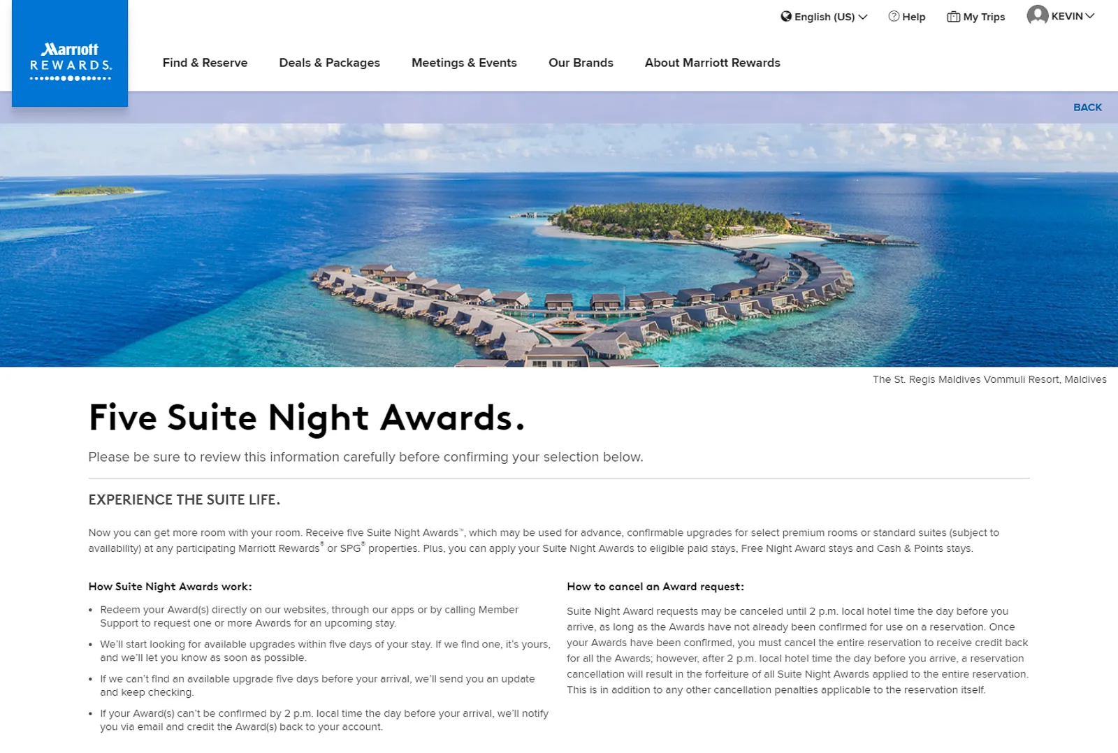 When you accumulate 50 nights at Marriott International properties within a calendar year, you unlock a Choice Benefit reward.
