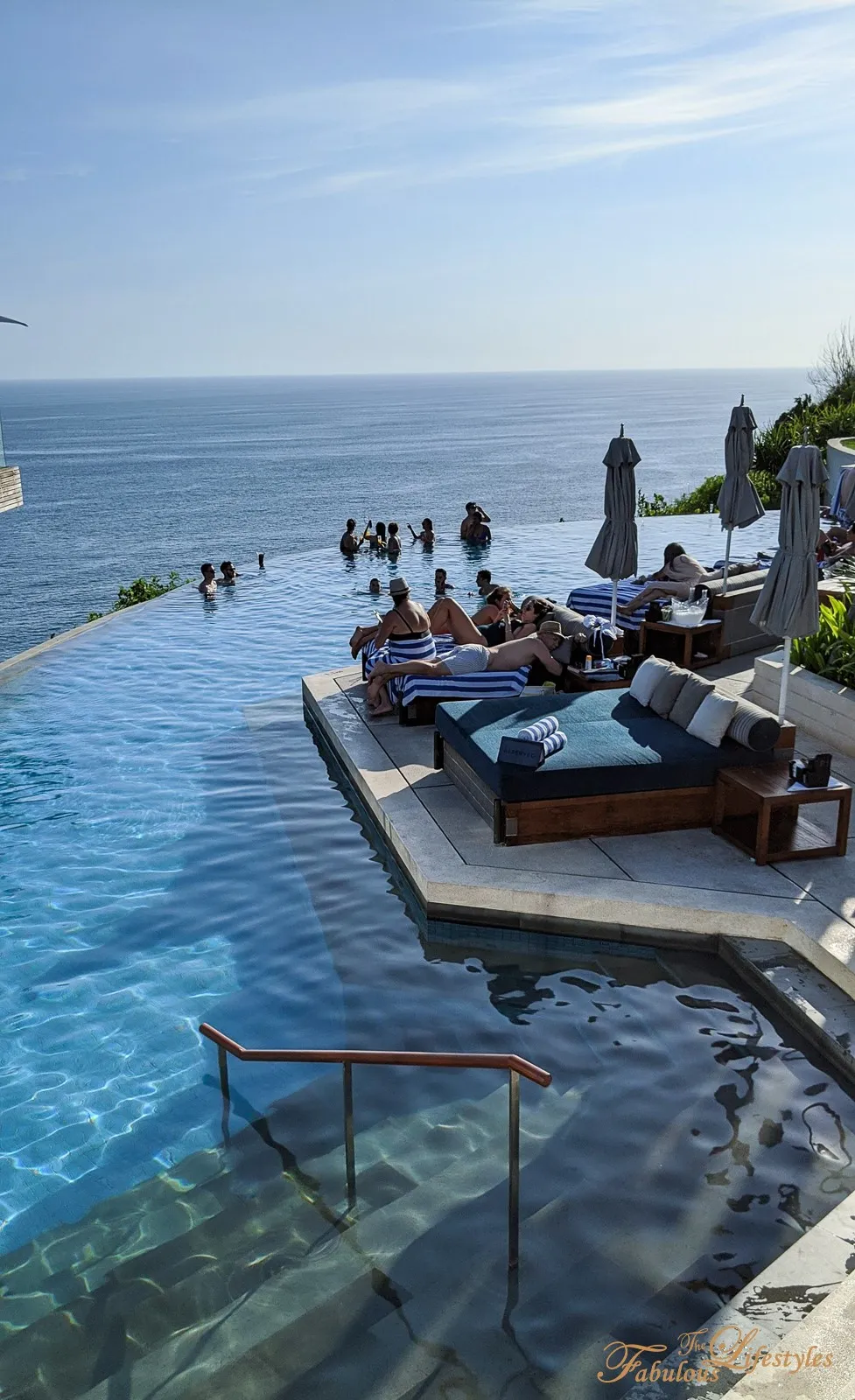 Stepping into Omnia Dayclub feels exactly like walking into a billionaire's lavish party in a Hollywood movie! The glittering Rubik's Cube-like bar building seemingly floats on the endless open ocean—it's incredibly chic and trendy. Everywhere you look, there are gorgeous people hanging out. Since its grand opening in 2018, countless influencers have posed for photos on the transparent glass-railing bridge, skyrocketing its fame and turning it into Bali's hottest new Instagram landmark!!!