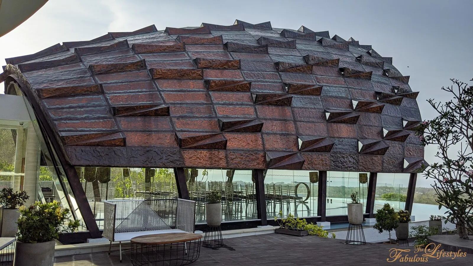 This highly distinctive roof, visible from afar and easily the resort's signature landmark, was inspired by the leatherback turtles that have nested in this part of Bali for centuries.