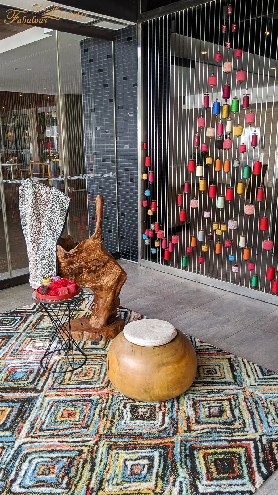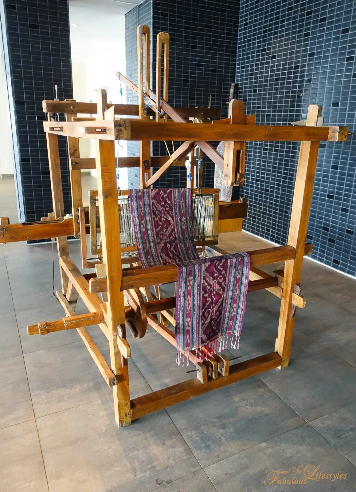 Beyond the loom-shaped booths, there's actually a real weaving loom set right at the entrance!
