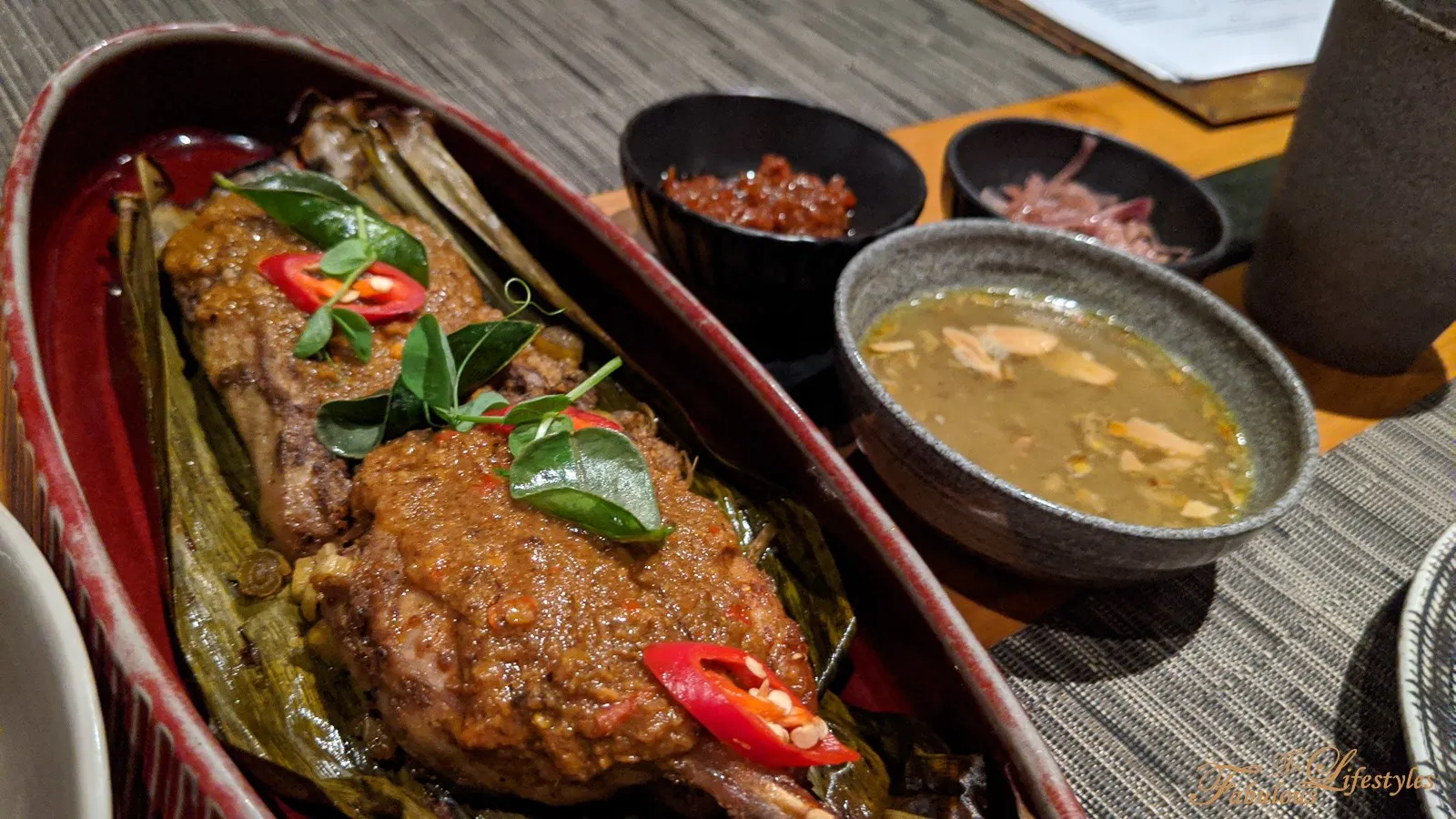 The food itself is traditional Indonesian cuisine, though the plating leans towards a more elegant, Western-style presentation.