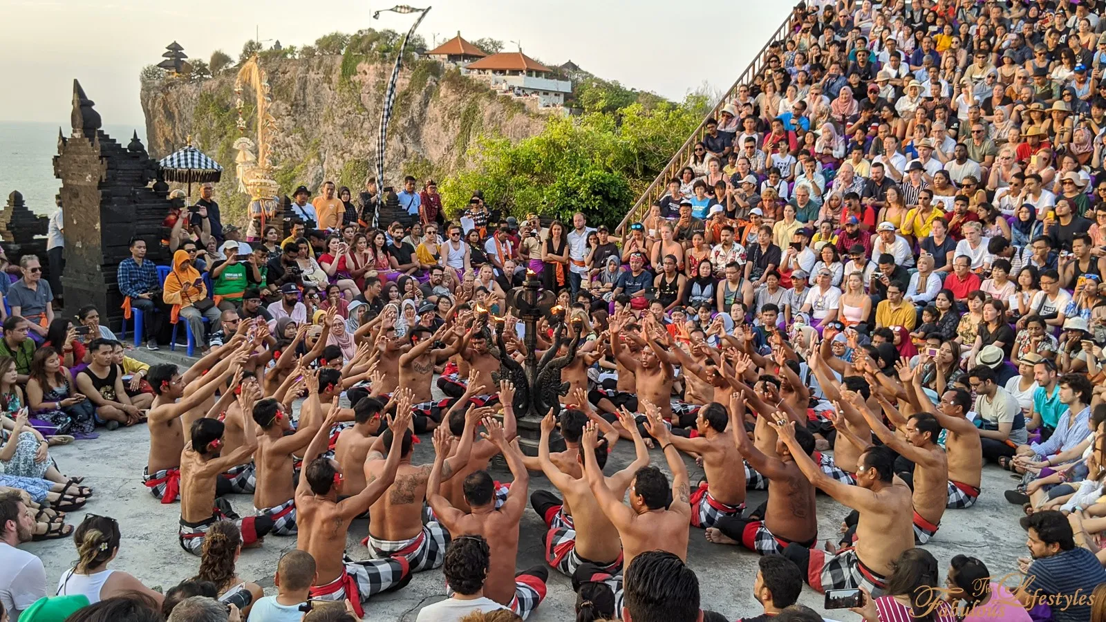 The famous traditional Indonesian Kecak Fire Dance is held in a spectacular circular amphitheater perched right on the cliff edge.