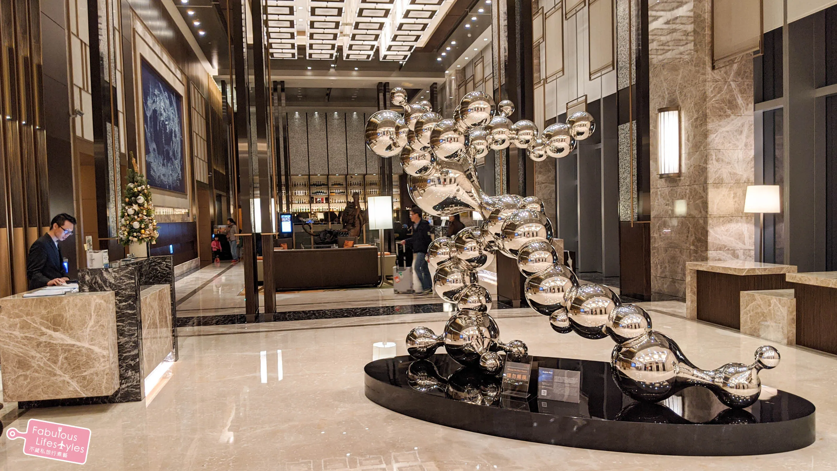 The lobby of Courtyard Taipei is located on the 7th floor. As soon as the elevator doors open, you're immediately drawn to the incredibly spacious, high-ceilinged area. The biggest eye-catcher is undoubtedly "Bubble Man"—measuring 3.5 meters long and 2.5 meters wide, he looks like a slimmed-down Michelin Man!