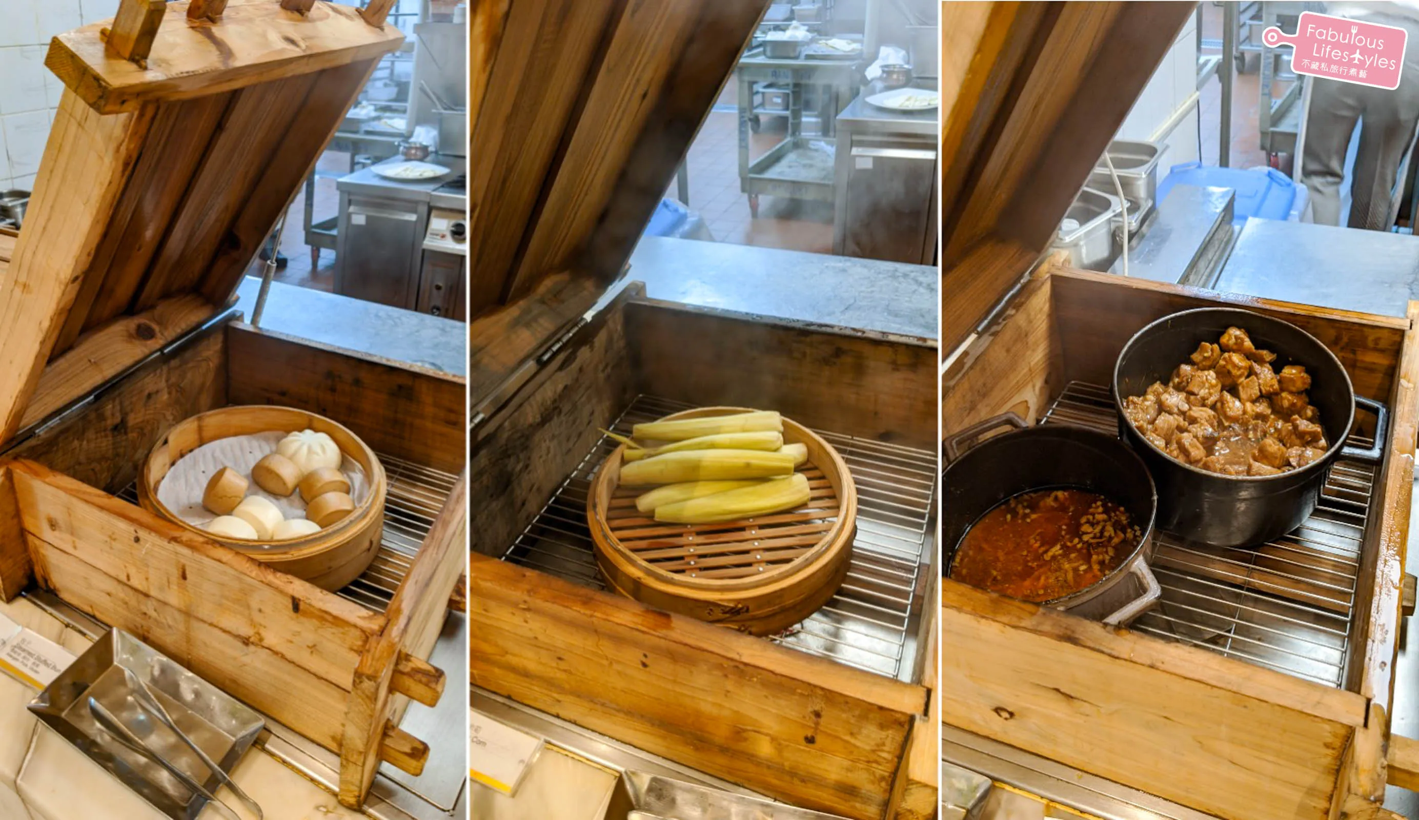 The various Chinese dishes displayed in bamboo steamers not only stay warm but also add a wonderful retro, nostalgic flavor to the meal!