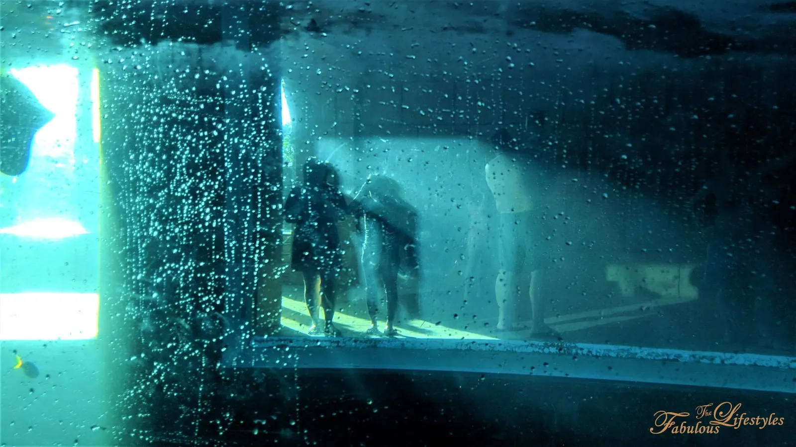 Just out of the exit and to the right (opposite the cubbies) is a spot where you can take photos of the transparent waterslide from the outside!