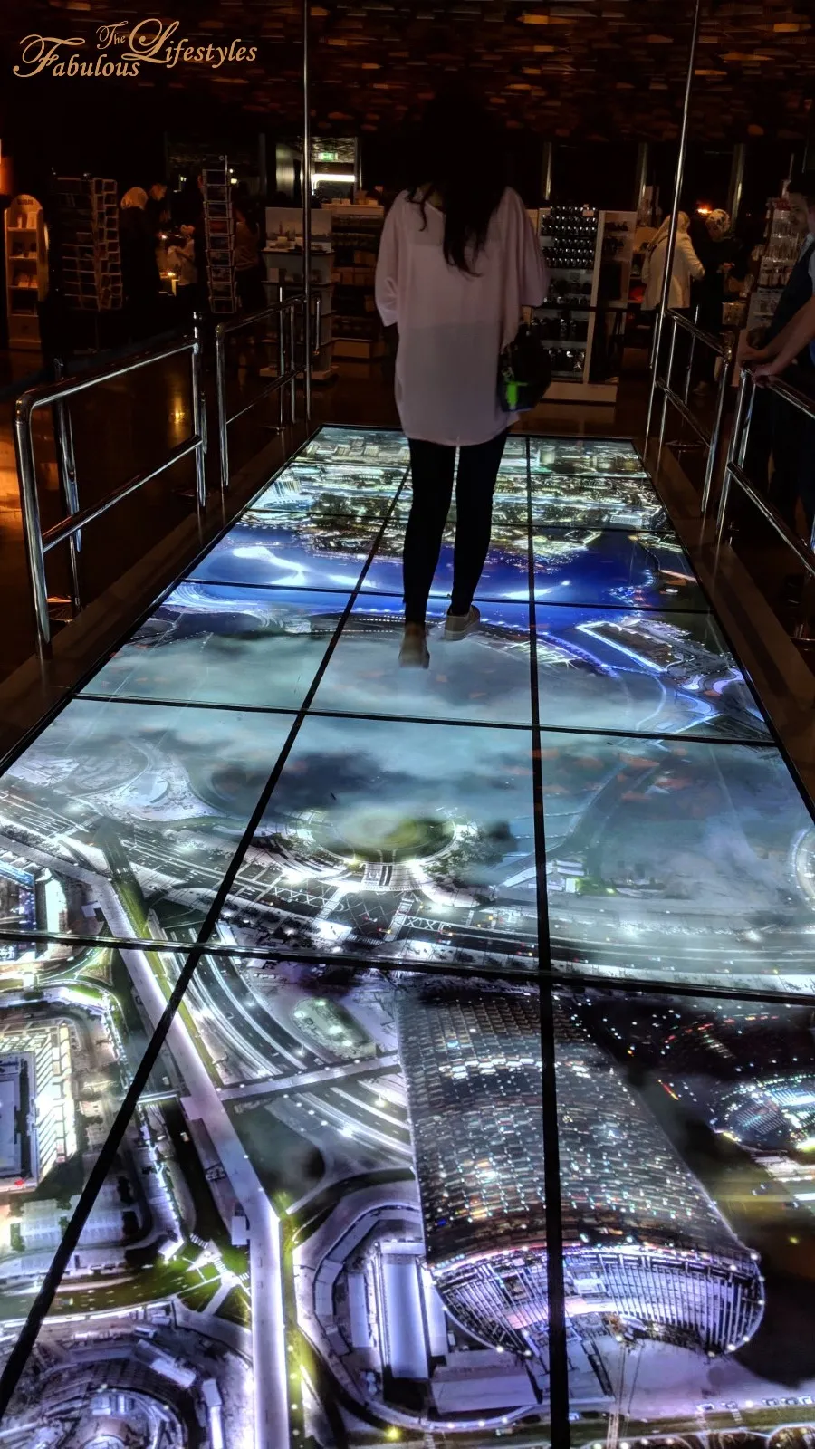 The elevator takes you straight up to the 125th-floor 360° observation deck. On the 125th floor, there's a massive LED screen floor pieced together to simulate walking on a transparent glass walkway high up in the Burj Khalifa. We could definitely feel the sincere effort they put into it!! However~ comparing the two, Cherry personally prefers the Dubai Frame, where you have a genuine transparent glass walkway to look down at the real view below.