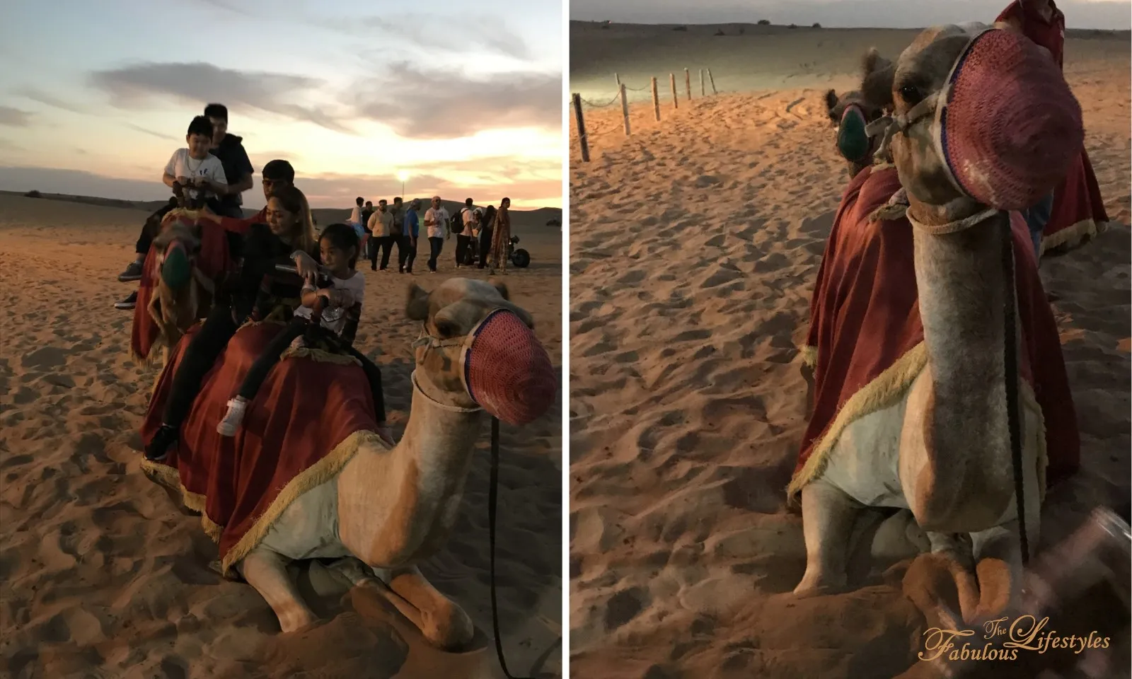 The Chinese translation on the billboard below is a bit weird, but the gist of it was that the free camel ride is a mere 100 meters long—you're done in less than two minutes round trip! The sign was advertising their paid "15-minute camel ride" upgrade for AED 30 per person.