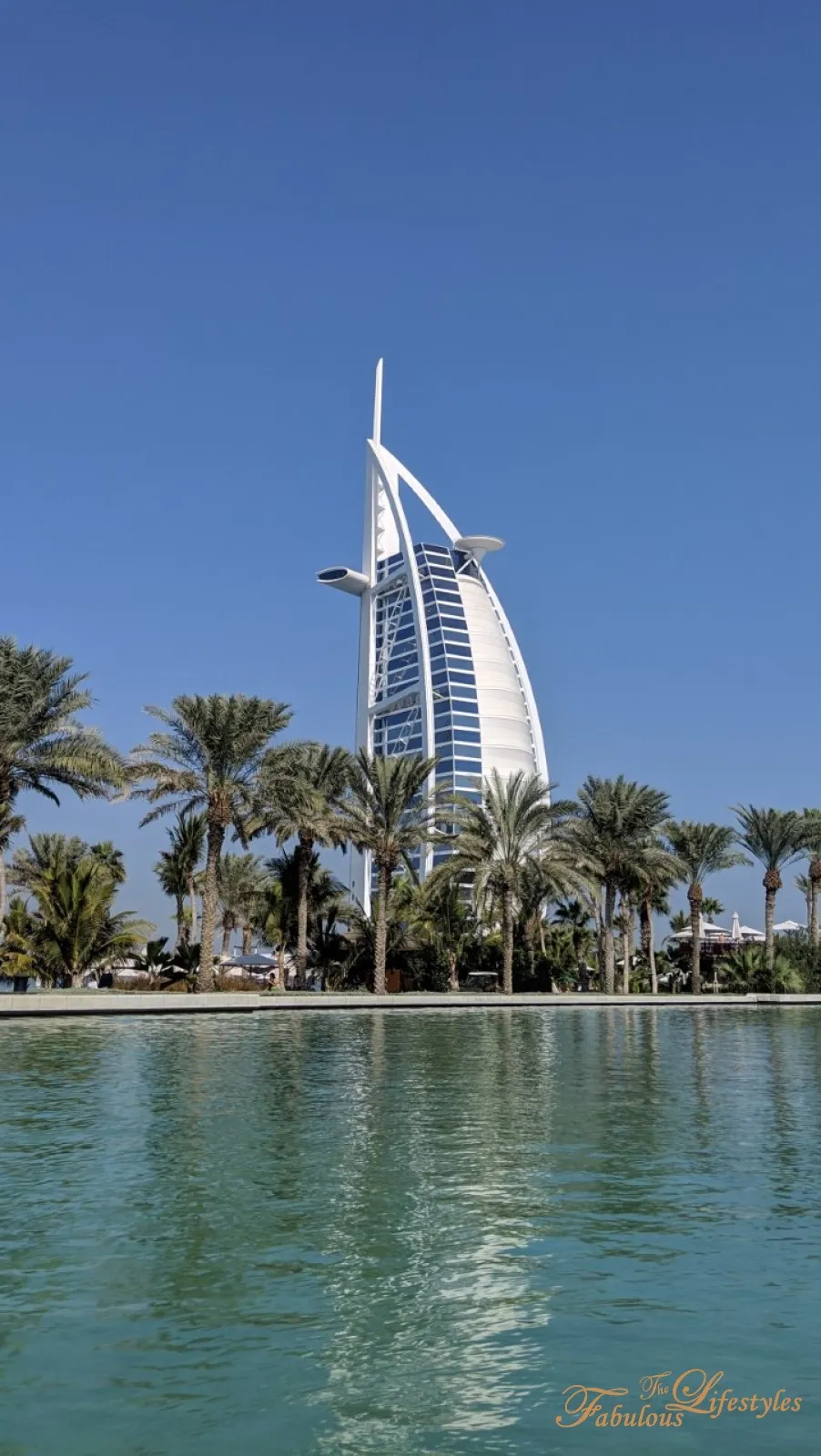 Once we passed the little bridge in the bottom right of the photo above, the full panoramic view of the Burj Al Arab was finally revealed~~~!