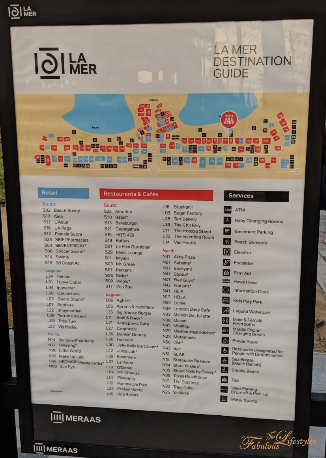 La Mer is quite massive, with an incredible variety of restaurants and shops! If you're looking for a nice place to grab a bite or sip some tea, you can use the map below as a reference~
