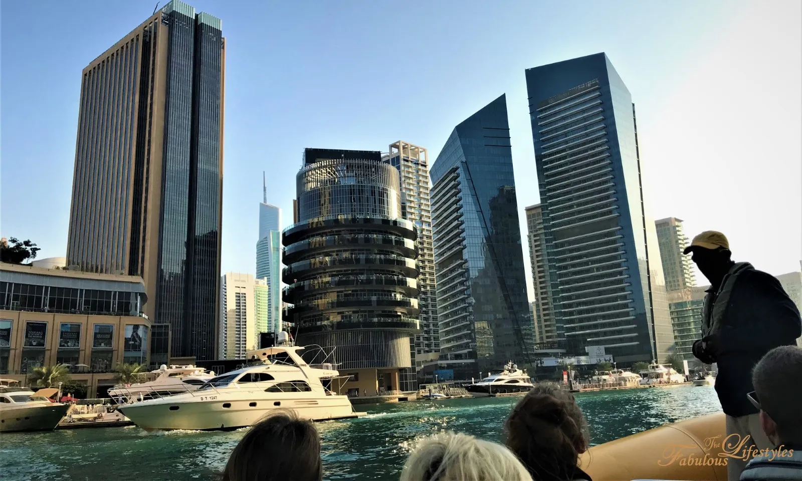 At the beginning, the boat cruises slowly within the marina at about 4 knots (22 km/h). Our guide gave a very detailed and engaging explanation of the stories behind the stunning buildings surrounding Dubai Marina!