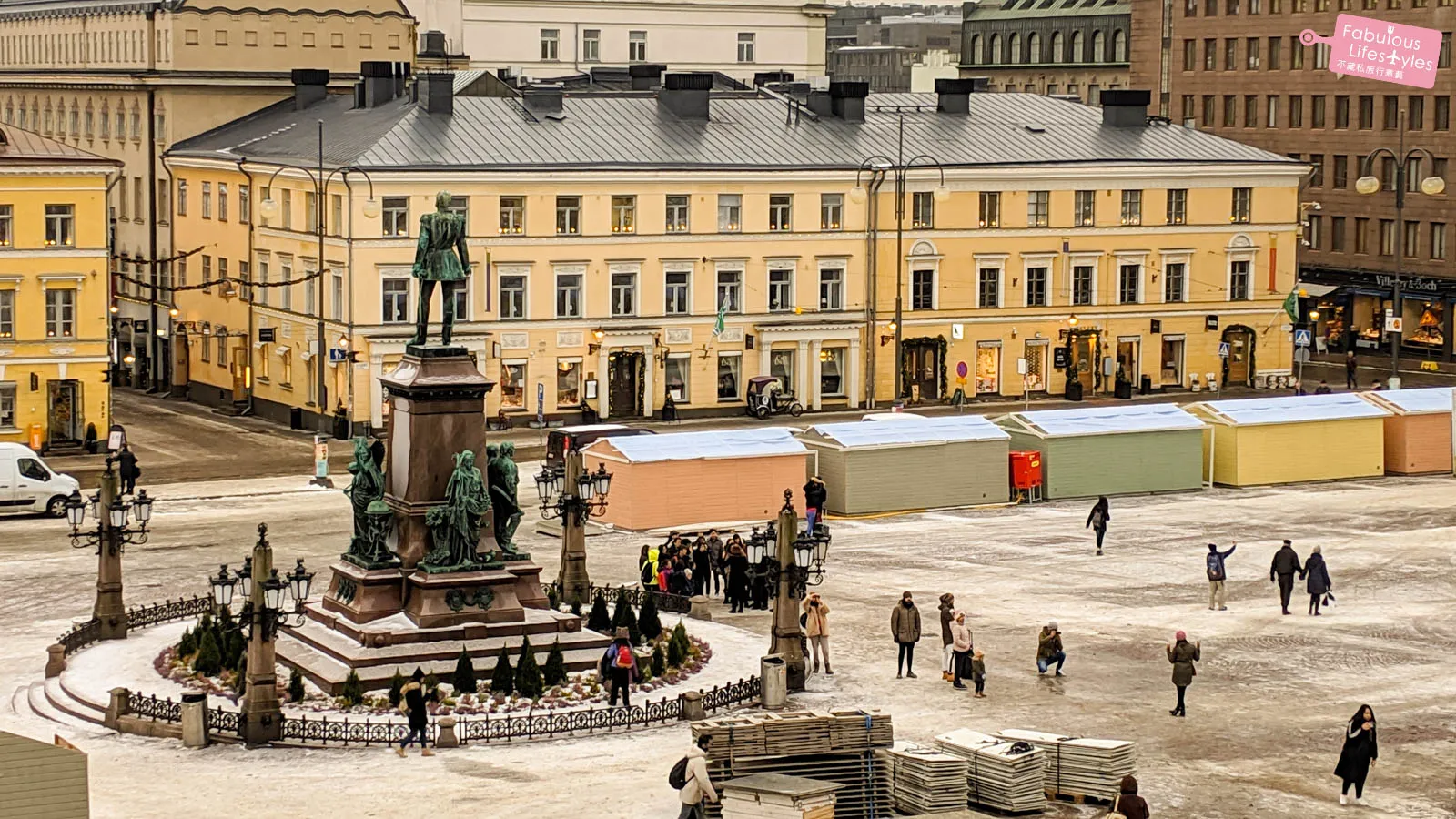 Those little wooden cabins down in the square are remnants of the Helsinki Christmas Market that had just wrapped up. The market usually runs from December 6th to December 22nd, but sadly, we just missed it…