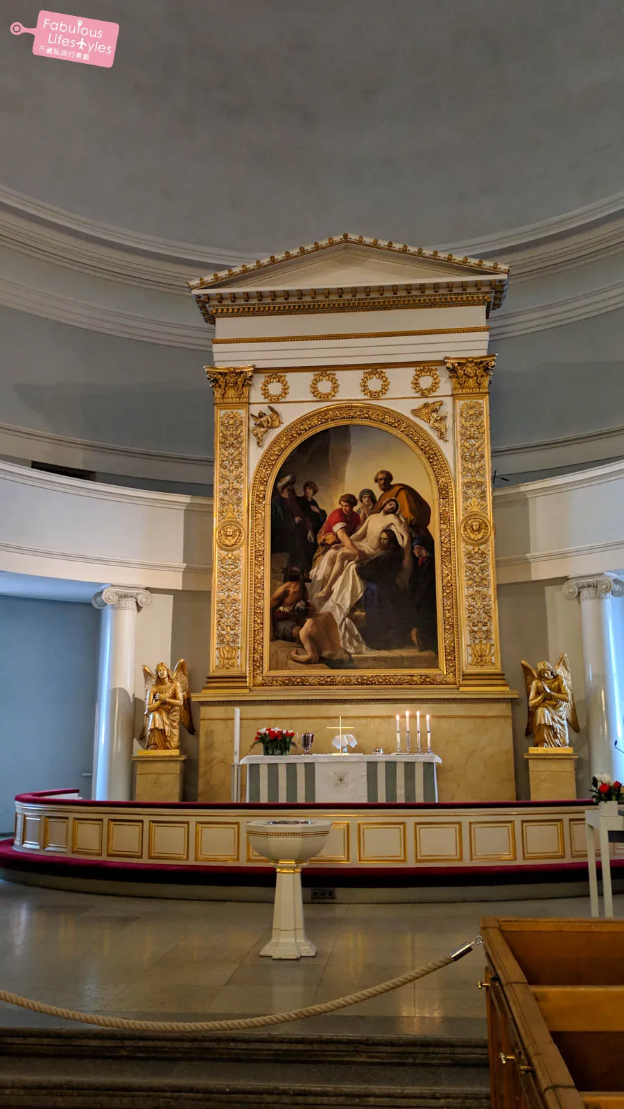 Turn around and you'll spot the impressive pipe organ tucked away right under the church dome—definitely a hidden gem feature of Helsinki Cathedral! With its striking green domes and unique exterior, combined with such an elegant interior, this is undoubtedly a must-visit spot in Helsinki.