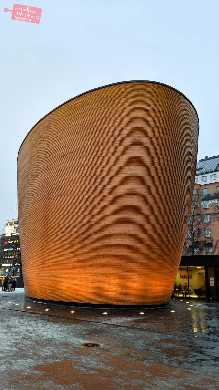 Standing in the bustling, crowded Narinkkatori Square, this striking cylindrical building doesn't immediately strike you as a traditional European church. Believe it or not, this is the Kamppi Chapel—a design marvel that won an International Architecture Award in 2010 and was part of the "World Design Capital Helsinki 2012" program.