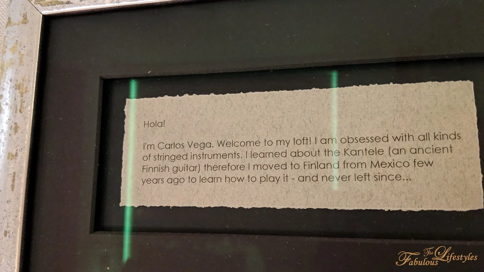 There was also a sweet little framed note — a message to guests from the room's "owner," Cario Vego. He wrote: "Welcome to my loft. I've always been fascinated by stringed instruments. A few years ago I learned about the kantele (an ancient Finnish harp), moved from Mexico to Finland to learn how to play it, and have never left since…" We're not entirely sure if Cario is a real person, but the story — combined with that actual guitar on the wall — instantly made the space feel like someone's real, lived-in home. Warmth factor: through the roof.