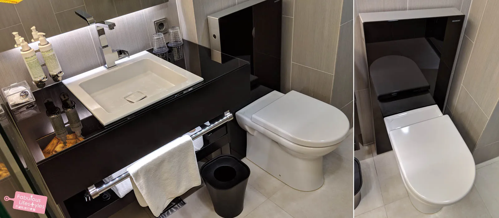 The most memorable feature? The toilet. It was embedded into an enormous panel that looked like it belonged in a high-end tech showroom. The whole bathroom took on a futuristic feel because of it. How do you flush? We puzzled over it for a while — we'll leave that mystery for you to discover!