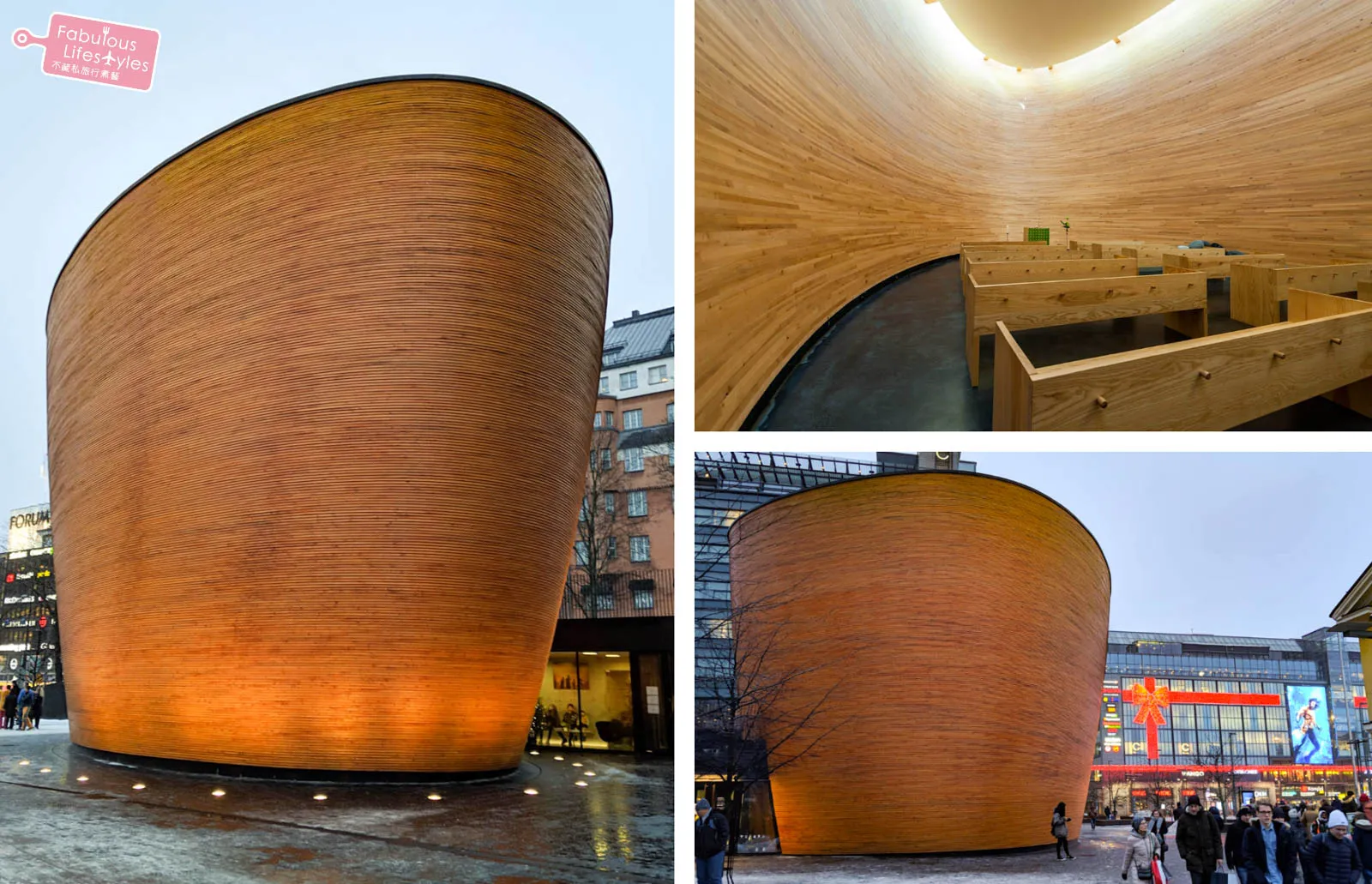 Standing in the middle of the bustling Narinkkatori Square is a striking cylindrical building. If no one told you, you'd probably never guess it's a church, as it completely subverts the traditional image of European cathedrals! This is the Kamppi Chapel, winner of the 2010 International Architecture Award and part of the "World Design Capital Helsinki 2012" program. Its primary purpose is right in its nickname—the Chapel of Silence. It was built to provide a place of calm and quiet reflection right in the busiest part of the city. Like its exterior, the interior is made entirely of wood without any excessive decoration, embodying pure, minimalist Nordic design. It's simple, yet incredibly warm and uplifting.
