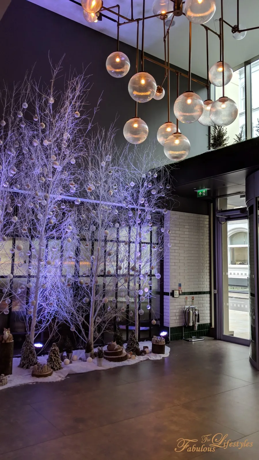 The beautifully decorated row of Christmas trees right inside the hotel entrance.