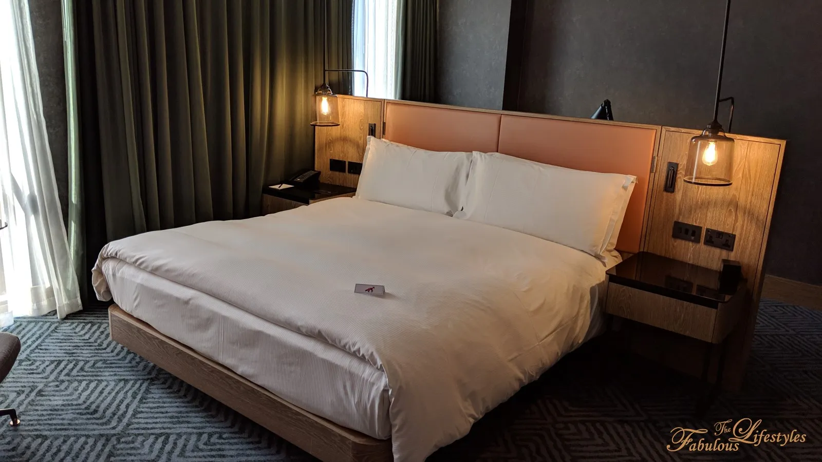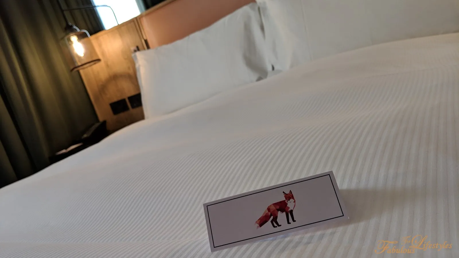 There was a little fox pattern placed on the bed. If you observe closely, you'll spot this little fox hidden in many subtle spots around this Hilton (like on the lobby ceiling). It's a very low-key way of weaving the fox motif throughout the hotel's entire design. We really love this cohesive but understated theme!