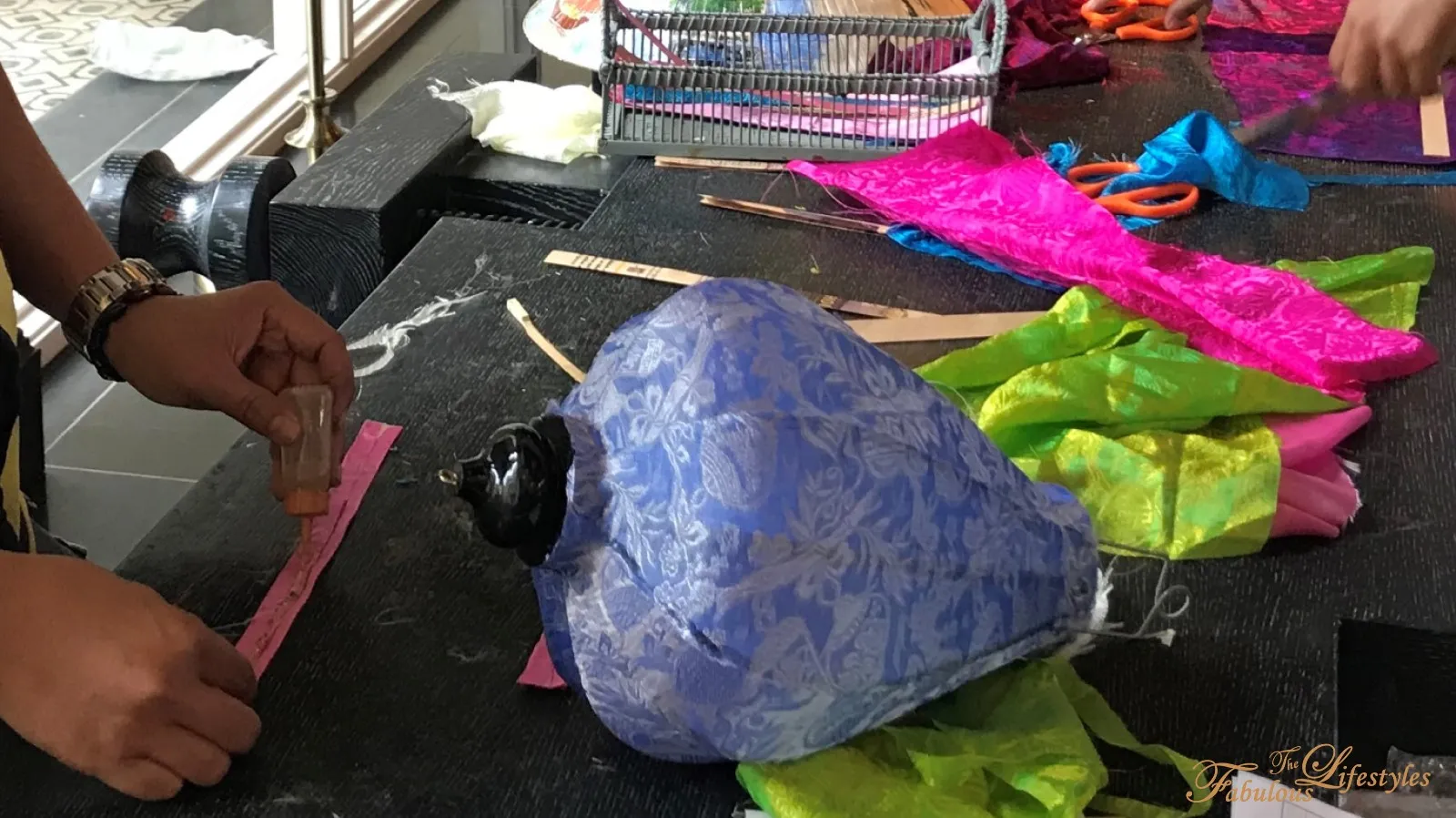 In the end, the staff kindly steps in to help us secure and finish the top and bottom ends of the lanterns.