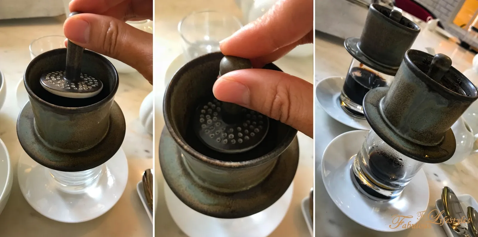 Following the teacher's instructions, we went step-by-step through the process of brewing an authentic Vietnamese drip coffee.